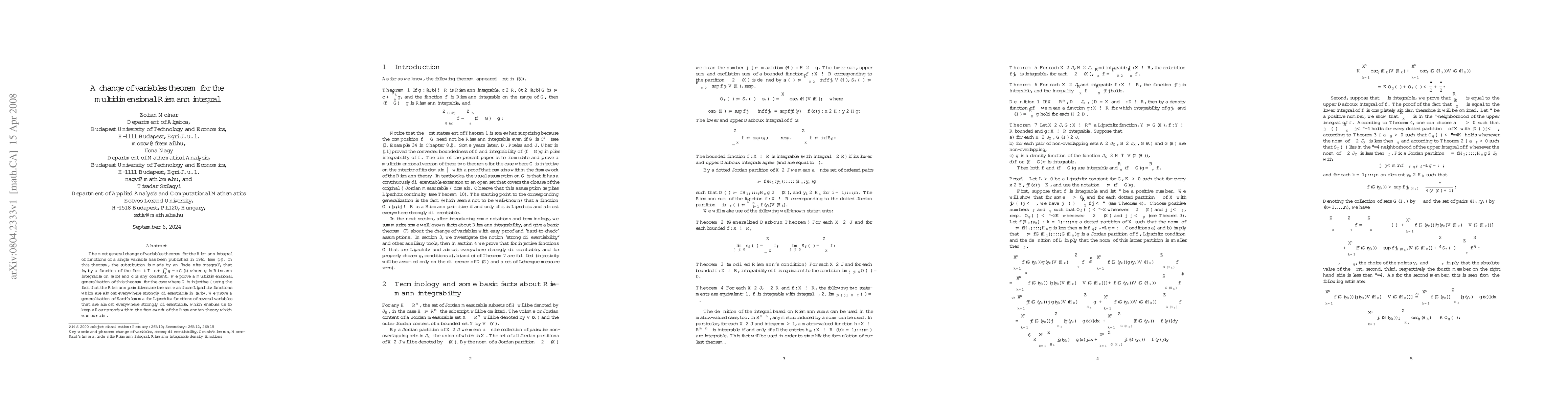 The paper presents a novel generalization of Kestelman's change of variables theorem for multidimensional Riemann integrals, along with a generalized version of Sard's lemma for Lipschitz functions.