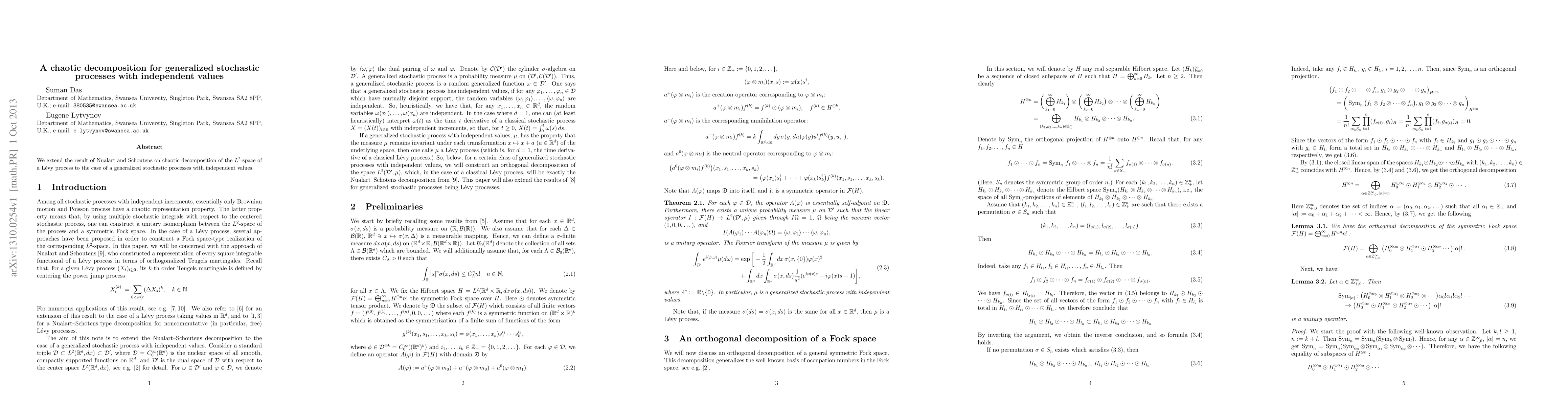 This paper extends chaotic decomposition to generalized stochastic processes with independent values, building on previous work for Lévy processes.