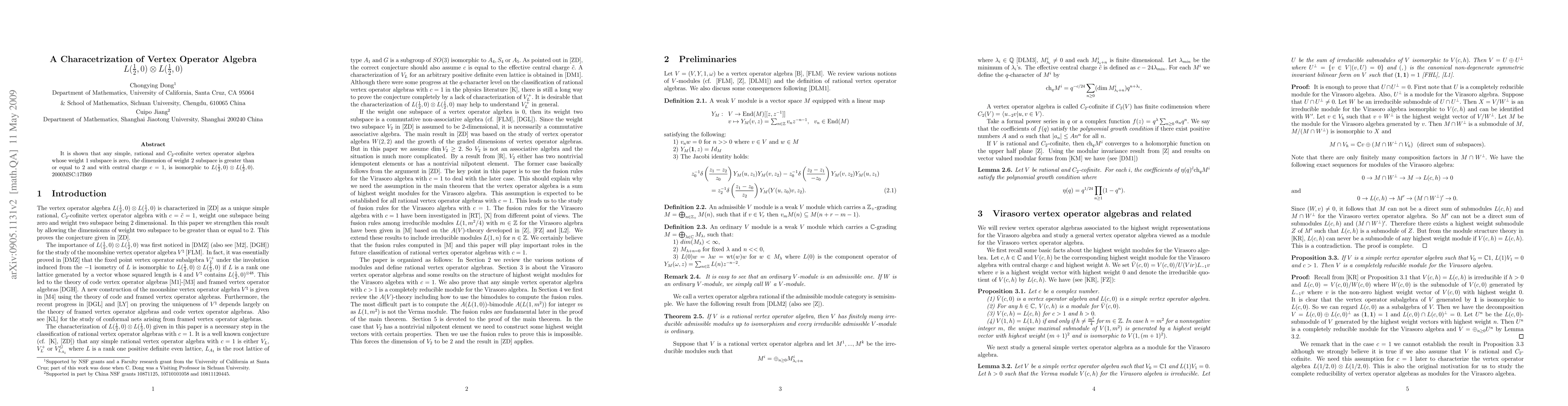 It is shown that any simple, rational and C_2-cofinite vertex operator algebra whose weight 1 subspace is zero, the dimension of weight 2 subspace is greater than or equal to 2 and with central charge c=1, is isomorphic to L(1/2,0)\otimes L(1/2,0).