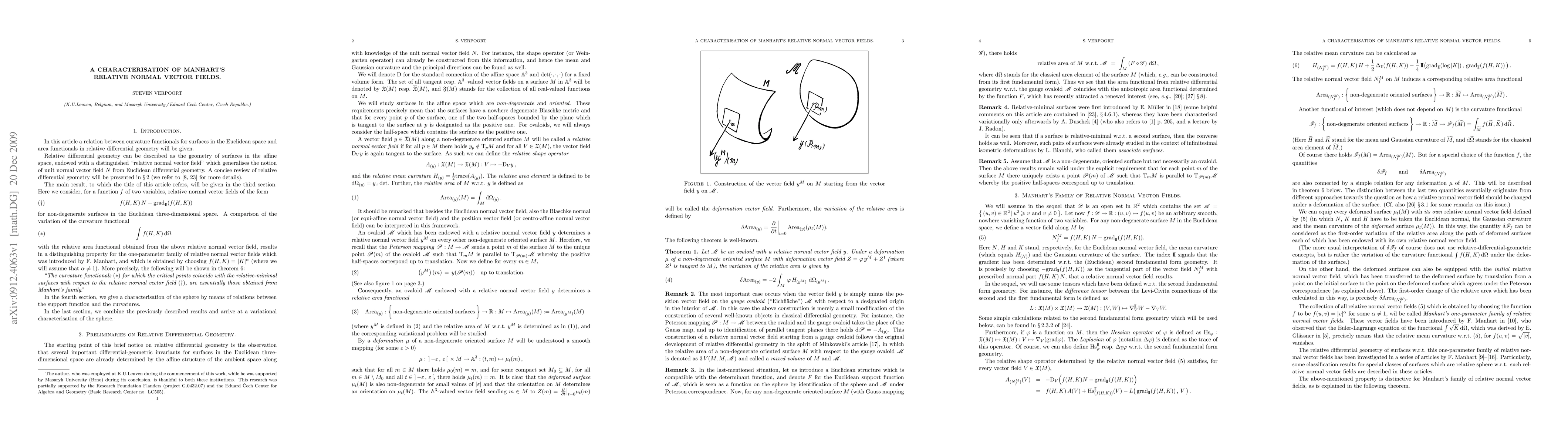 Researchers found a connection between curvature functionals for surfaces in 3D space and area functionals in relative differential geometry, which can characterise the sphere through a one-parameter family of relative normal vector fields.