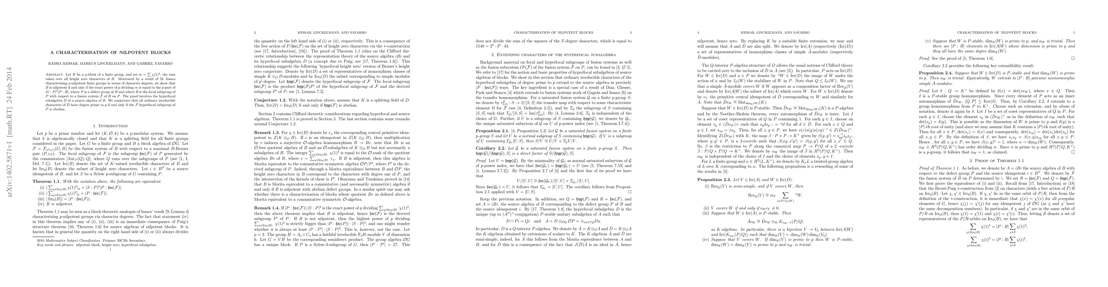A p-block is nilpotent if a certain power of p dividing the sum of squares of its height zero characters matches a specific condition involving defect groups and fusion systems.