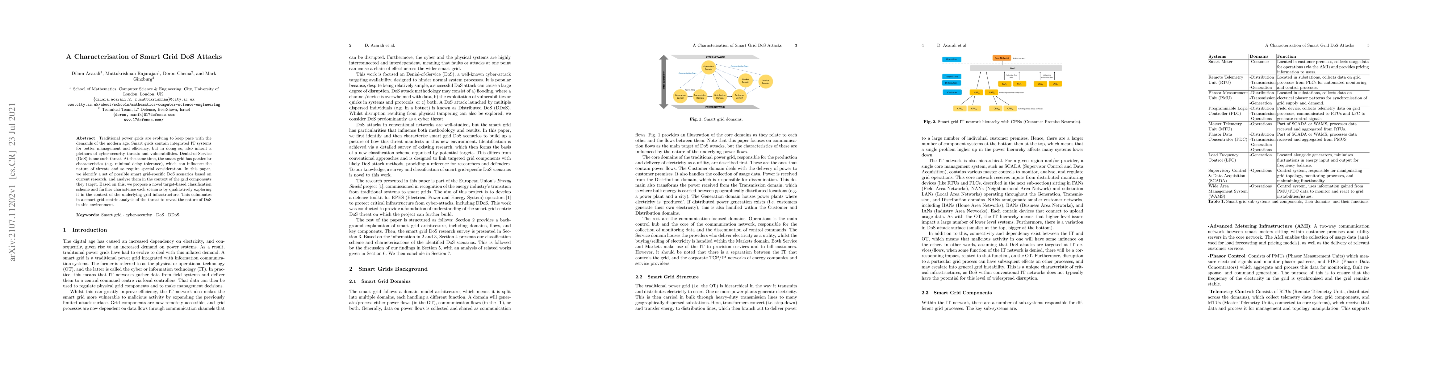 This paper identifies and classifies smart grid-specific Denial-of-Service (DoS) attack scenarios based on their target components within the grid. It proposes a novel classification scheme and analyzes these scenarios considering the unique characteristics of smart grids, providing a detailed characterization of DoS threats in this context.