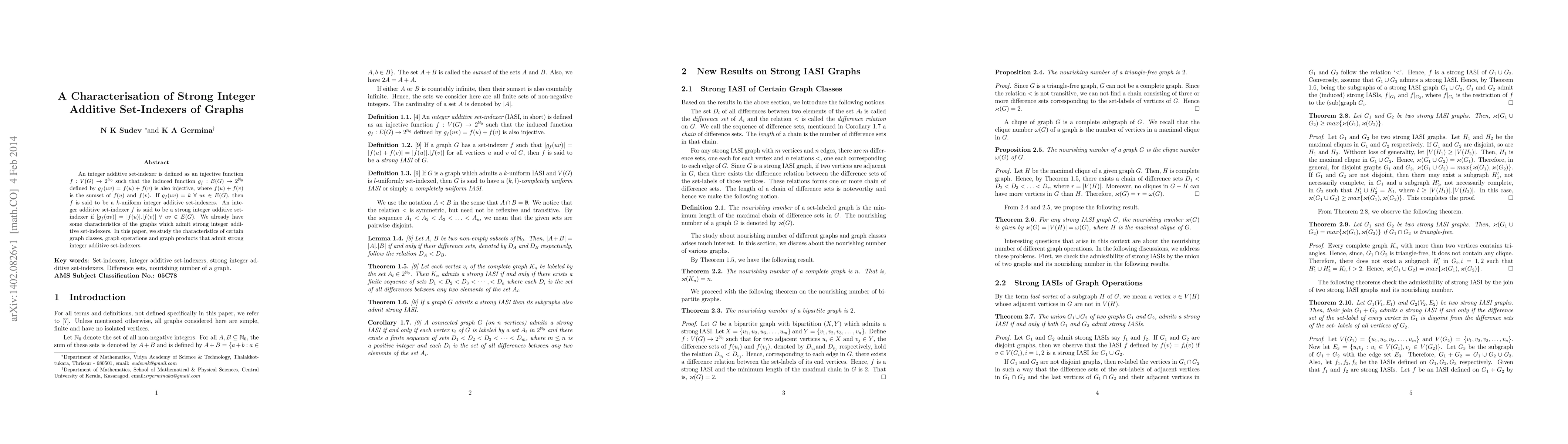 An integer additive set-indexer is defined as an injective function $f:V(G)\rightarrow 2^{\mathbb{N}_0}$ such that the induced function $g_f:E(G) \rightarrow 2^{\mathbb{N}_0}$ defined by $g_f (uv) = f(u)+ f(v)$ is also injective, where $f(u)+f(v)$ is the sumset of $f(u)$ and $f(v)$. If $g_f(uv)=k~\forall~uv\in E(G)$, then $f$ is said to be a $k$-uniform integer additive set-indexers. An integer additive set-indexer $f$ is said to be a strong integer additive set-indexer if $|g_f(uv)|=|f(u)|.|f(v)|~\forall ~ uv\in E(G)$. We already have some characteristics of the graphs which admit strong integer additive set-indexers. In this paper, we study the characteristics of certain graph classes, graph operations and graph products that admit strong integer additive set-indexers.
