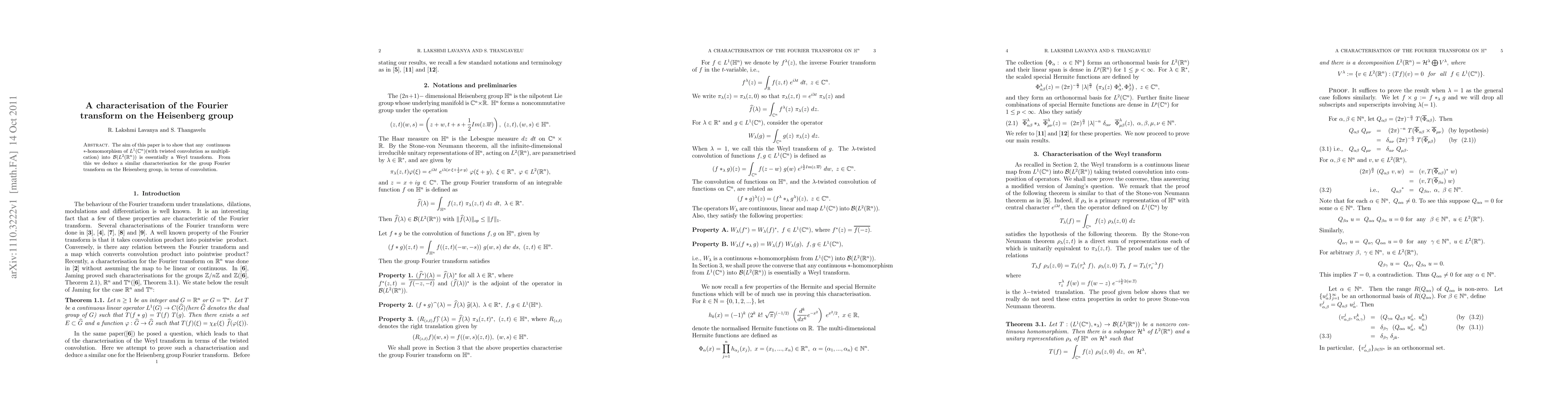 This paper characterizes continuous *-homomorphisms from L1(Cn) to B(L2(Rn)) as essentially Weyl transforms, leading to a similar characterization for the Fourier transform on the Heisenberg group via convolution.
