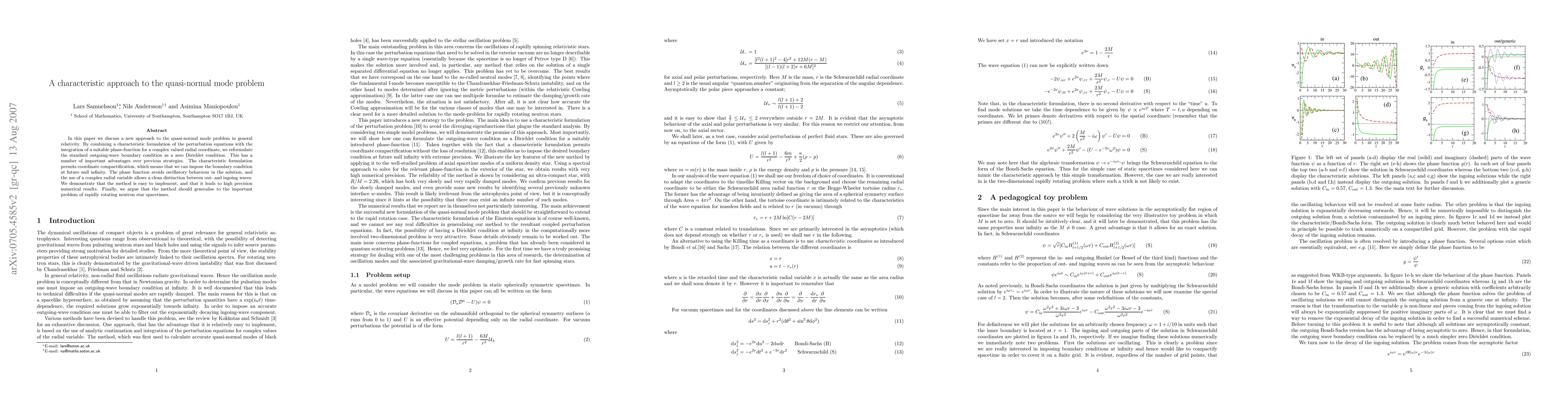 This paper introduces a novel method for solving the quasi-normal mode problem in general relativity using a characteristic formulation and a complex radial coordinate, which simplifies the boundary condition and avoids oscillatory behavior, leading to high precision numerical results. The method is argued to generalize to rapidly rotating neutron star spacetimes.