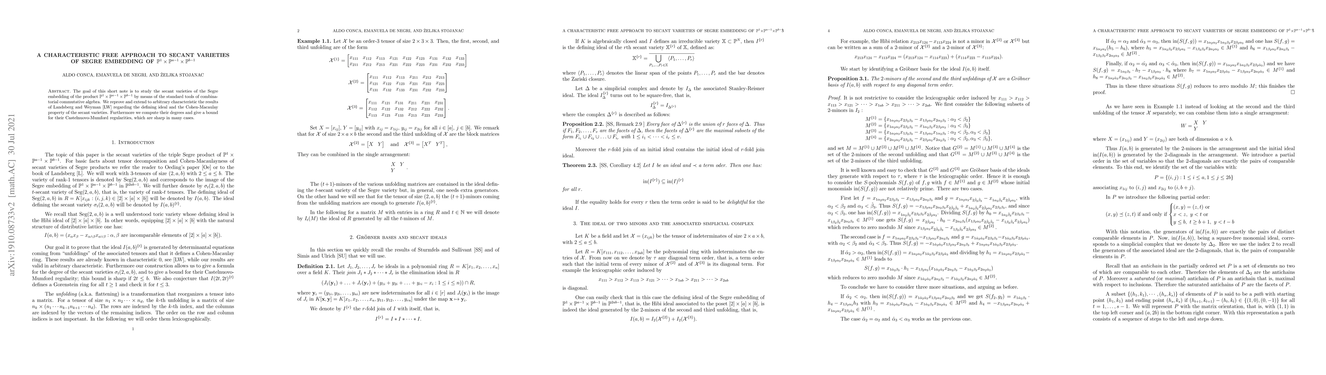 This paper studies the secant varieties of triple Segre products using combinatorial commutative algebra, extending results on their defining ideals and Cohen-Macaulay properties to any characteristic. It also computes the degree and provides a sharp bound for their Castelnuovo-Mumford regularity.