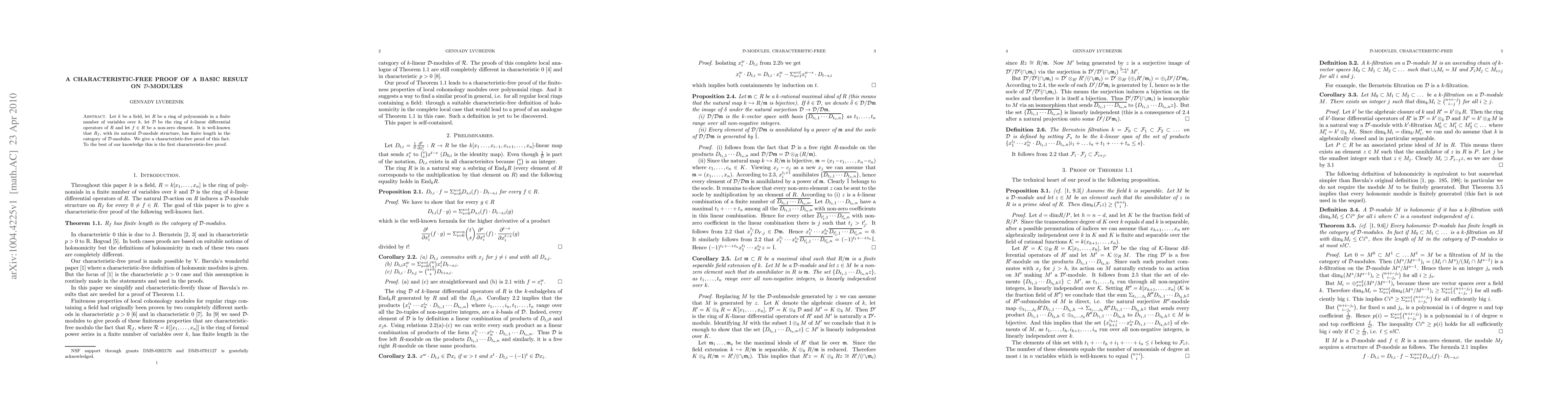 This paper presents a characteristic-free proof that the localization of the polynomial ring R with respect to a non-zero element f, equipped with its natural D-module structure, has finite length in the category of D-modules. To the best of the authors' knowledge, this is the first such proof without reliance on the field's characteristic.