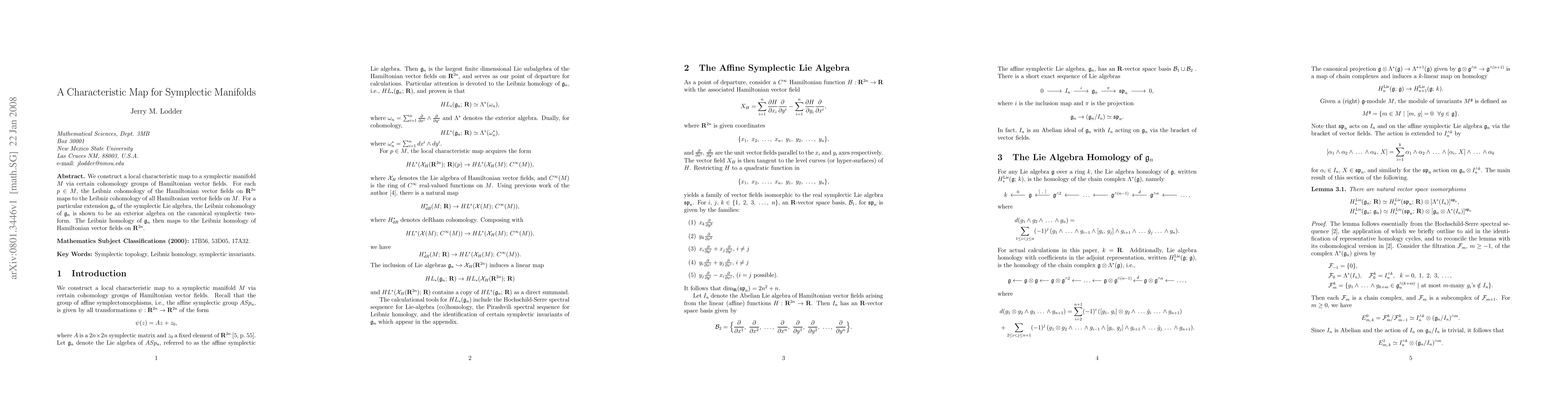 We construct a local characteristic map to a symplectic manifold M via certain cohomology groups of Hamiltonian vector fields. For each p in M, the Leibniz cohomology of the Hamiltonian vector fields on R^{2n} maps to the Leibniz cohomology of all Hamiltonian vector fields on M. For a particular extension g_n of the symplectic Lie algebra, the Leibniz cohomology of g_n is shown to be an exterior algebra on the canonical symplectic two-form. The Leibniz homology of g_n then maps to the Leibniz homology of Hamiltonian vector fields on R^{2n}.