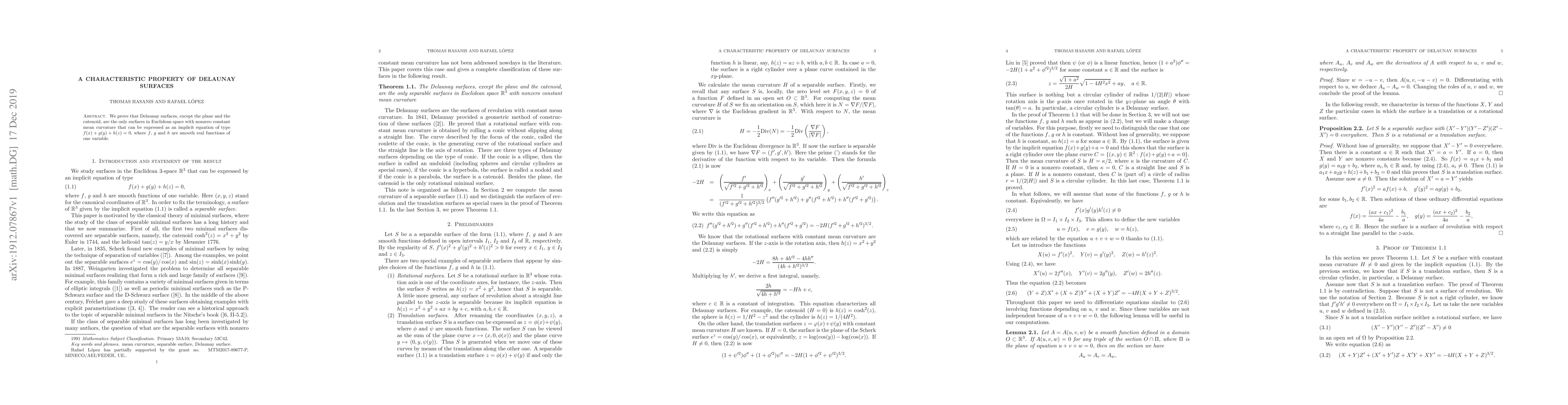 We prove that Delaunay surfaces, except the plane and the catenoid, are the only surfaces in Euclidean space with nonzero constant mean curvature that can be expressed as an implicit equation of type $f(x)+g(y)+h(z)=0$, where $f$, $g$ and $h$ are smooth real functions of one variable.