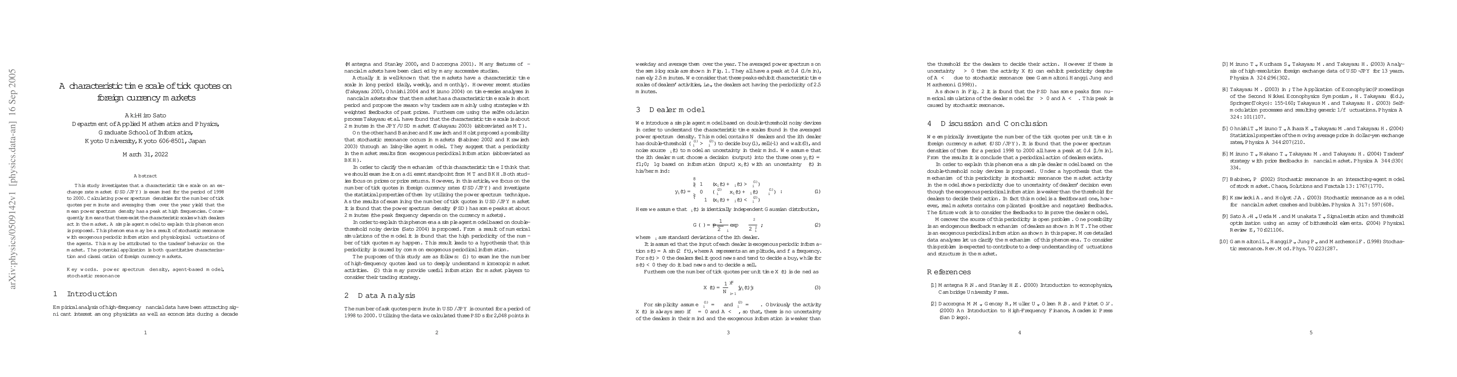 The study identifies a characteristic time scale in currency trading activity by analyzing tick quote data, revealing that traders tend to act at specific frequencies. This behavior may be driven by external signals and human factors, offering insights for market analysis and classification.
