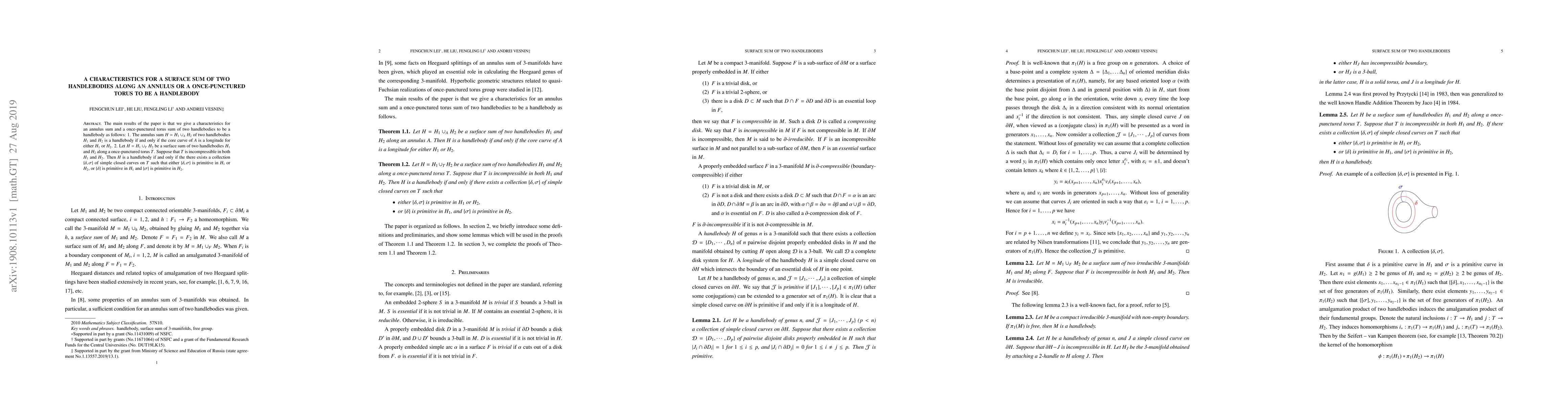 Two handlebodies can be summed along an annulus to form a handlebody if the core curve of the annulus is a longitude for one of the handlebodies, or through a more complex relationship involving primitive closed curves on the torus.