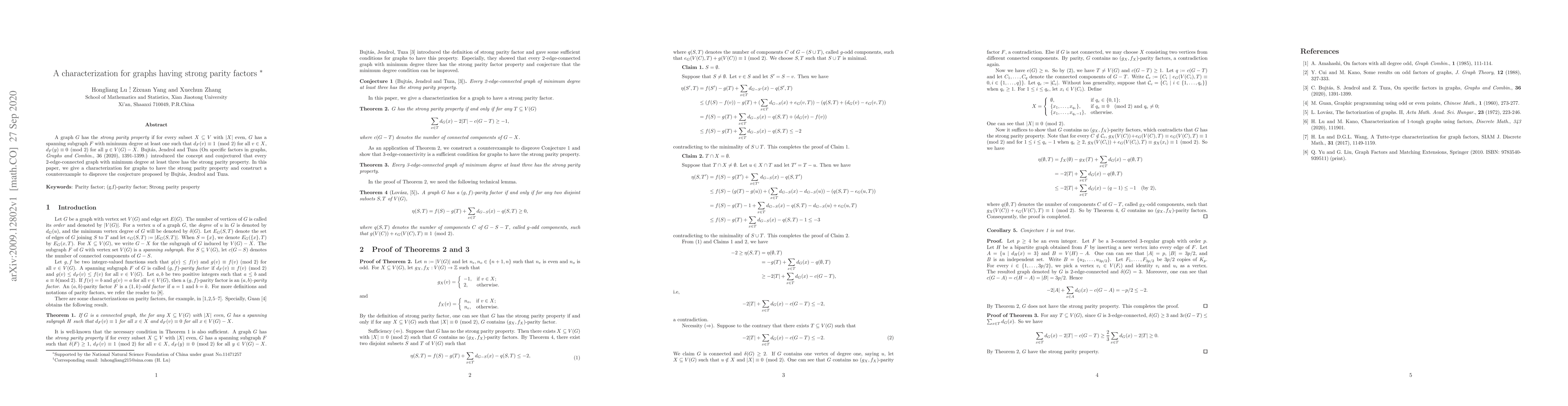 This paper characterizes graphs that possess the strong parity property, where a spanning subgraph must satisfy specific parity conditions for vertex degrees. It also disproves a conjecture by Bujt\'as, Jendrol, and Tuza regarding 2-edge-connected graphs with minimum degree three.