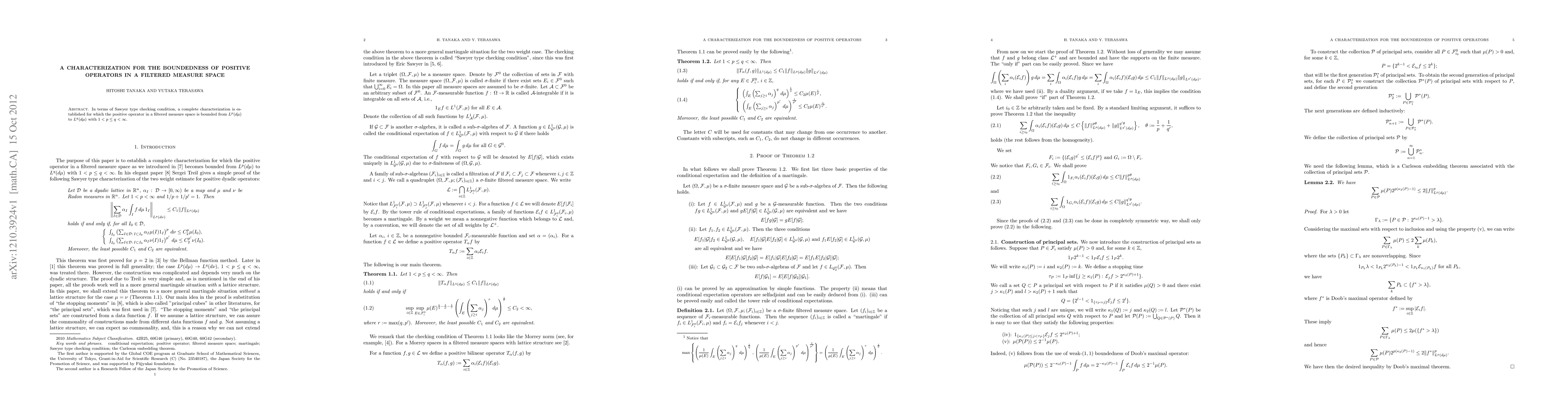 In terms of Sawyer type checking condition, a complete characterization is established for which the positive operator in a filtered measure space is bounded from $L^p(d\mu)$ to $L^q(d\mu)$ with $1