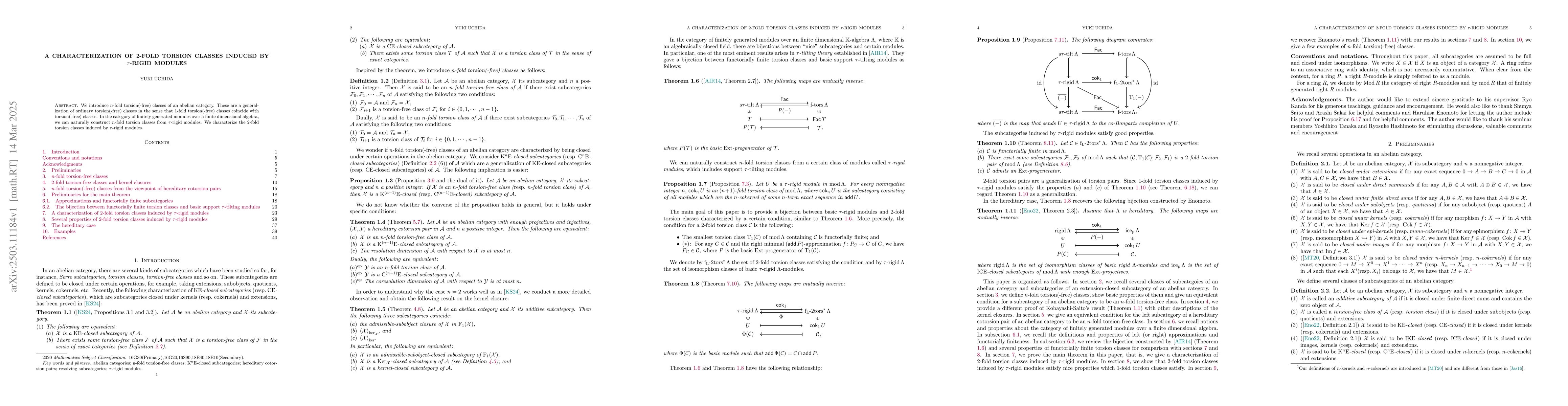 This work contributes to the understanding of module categories by providing a characterization of 2-fold torsion classes, which can have implications for representation theory and homological algebra.