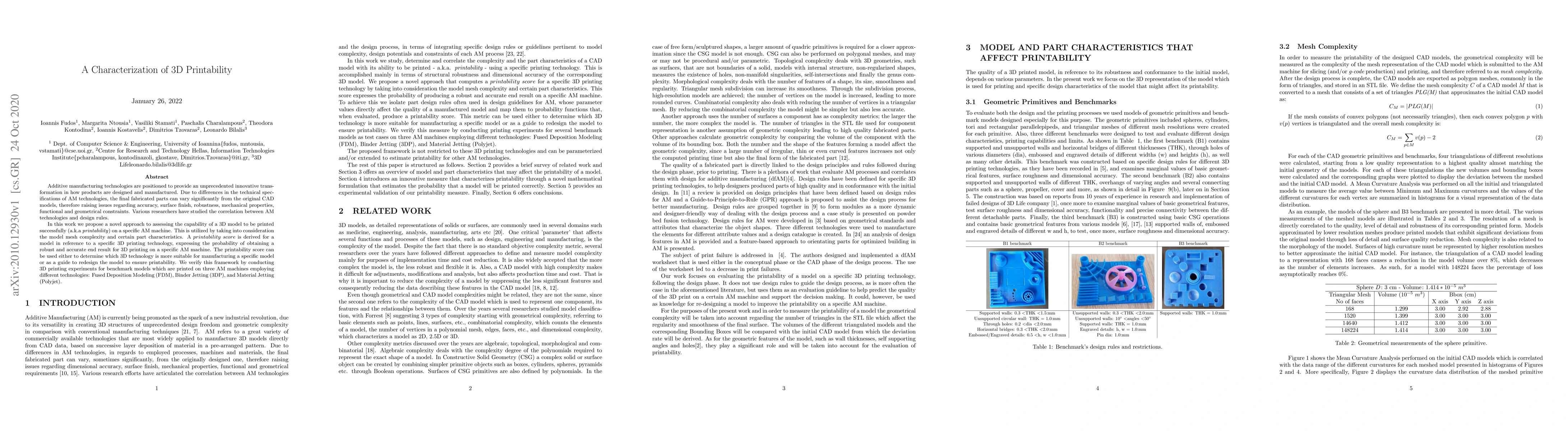 Additive manufacturing technologies are positioned to provide an unprecedented innovative transformation in how products are designed and manufactured. Due to differences in the technical specifications of AM technologies, the final fabricated parts can vary significantly from the original CAD models, therefore raising issues regarding accuracy, surface finish, robustness, mechanical properties, functional and geometrical constraints. Various researchers have studied the correlation between AM technologies and design rules. In this work we propose a novel approach to assessing the capability of a 3D model to be printed successfully (a.k.a printability) on a specific AM machine. This is utilized by taking into consideration the model mesh complexity and certain part characteristics. A printability score is derived for a model in reference to a specific 3D printing technology, expressing the probability of obtaining a robust and accurate end result for 3D printing on a specific AM machine. The printability score can be used either to determine which 3D technology is more suitable for manufacturing a specific model or as a guide to redesign the model to ensure printability. We verify this framework by conducting 3D printing experiments for benchmark models which are printed on three AM machines employing different technologies: Fused Deposition Modeling (FDM), Binder Jetting (3DP), and Material Jetting (Polyjet).