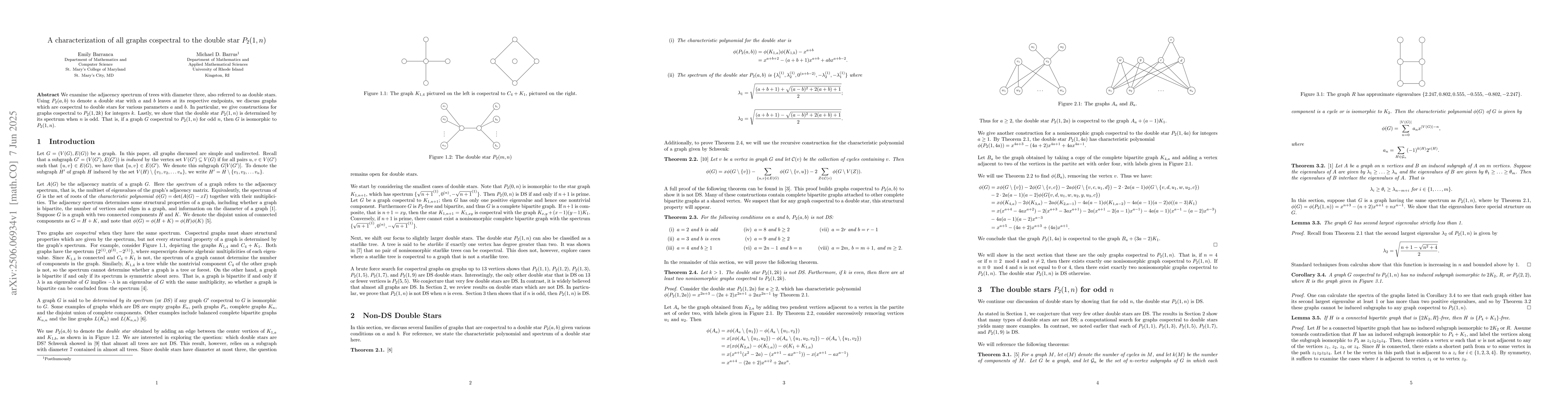 We examine the adjacency spectrum of trees with diameter three, also referred to as double stars. Using $P_2(a,b)$ to denote a double star with $ a$ and $b$ leaves at its respective endpoints, we discuss graphs which are cospectral to double stars for various parameters $a$ and $b$. In particular, we give constructions for graphs cospectral to $P_2(1,2k)$ for integers $k$. Lastly, we show that the double star $P_2(1,n)$ is determined by its spectrum when $n$ is odd. That is, if a graph $G$ cospectral to $P_2(1,n)$ for odd $n$, then $G$ is isomorphic to $P_2(1,n)$.