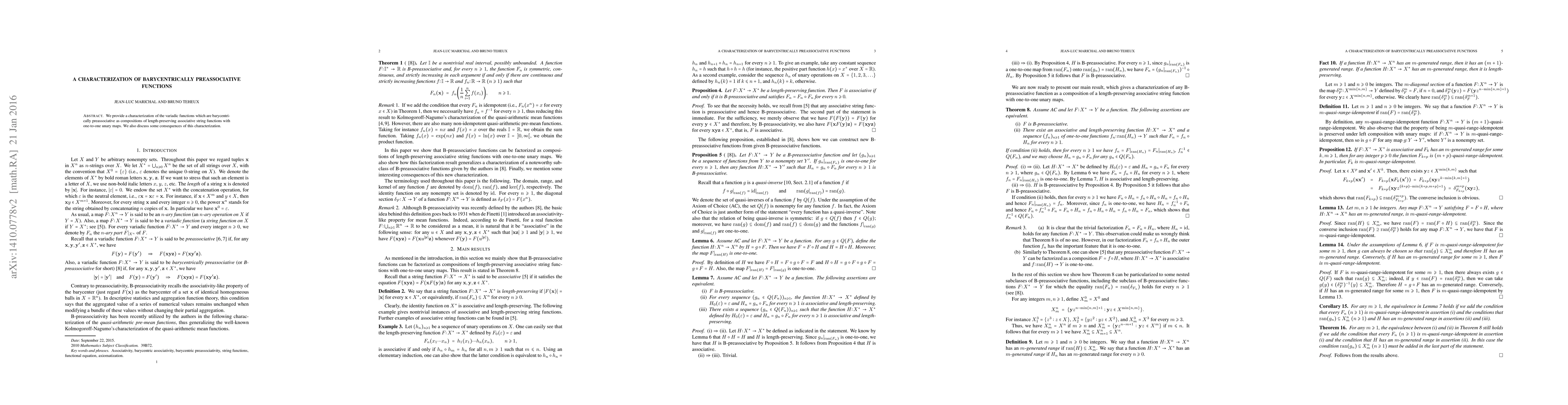 Researchers characterized barycentrically preassociative functions as compositions of specific string functions with one-to-one maps, providing insight into their structure and implications.