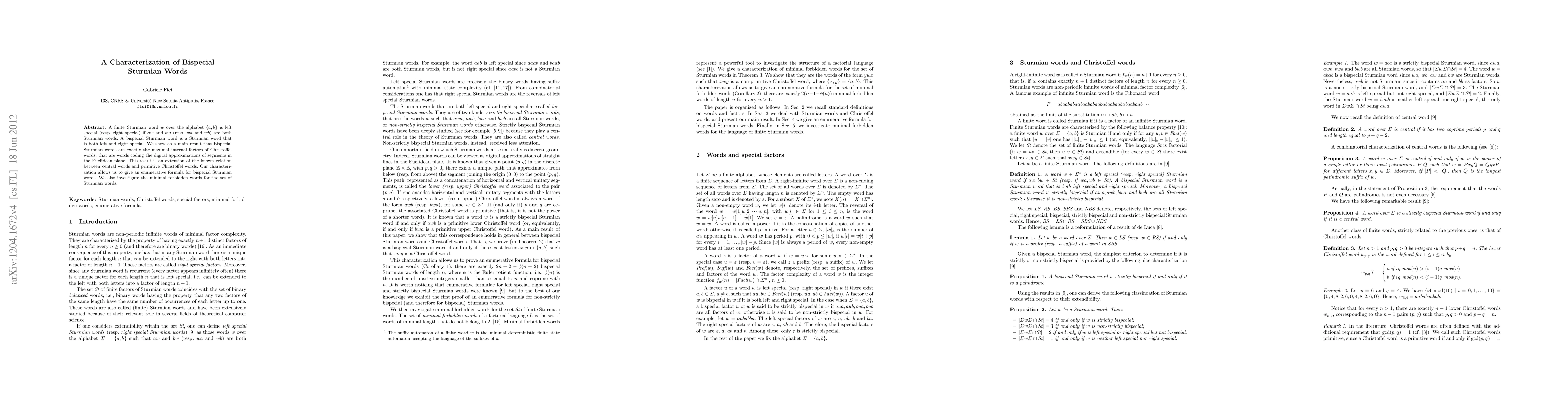This research contributes to our understanding of the structure and properties of Sturmian words, with potential applications in coding theory and computer science