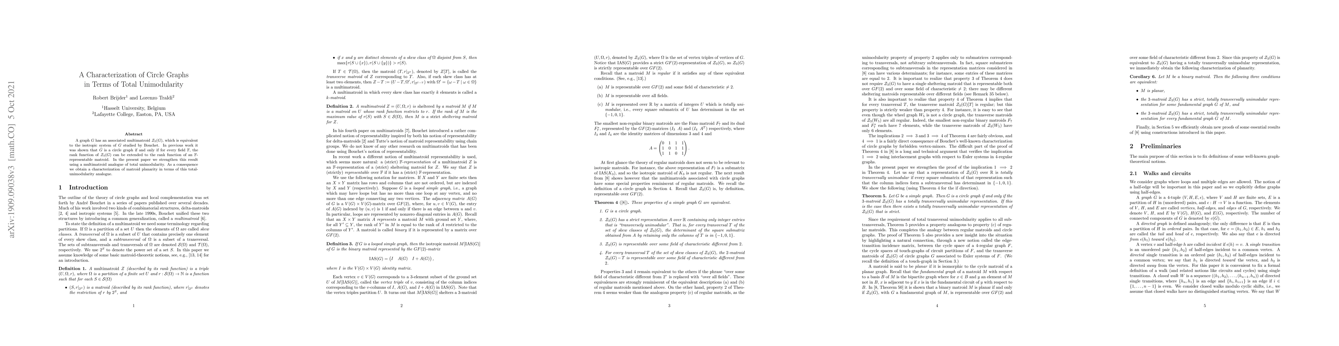 A graph $G$ has an associated multimatroid $\mathcal{Z}_3(G)$, which is equivalent to the isotropic system of $G$ studied by Bouchet. In previous work it was shown that $G$ is a circle graph if and only if for every field $\mathbb F$, the rank function of $\mathcal{Z}_3(G)$ can be extended to the rank function of an $\mathbb F$-representable matroid. In the present paper we strengthen this result using a multimatroid analogue of total unimodularity. As a consequence we obtain a characterization of matroid planarity in terms of this total-unimodularity analogue.