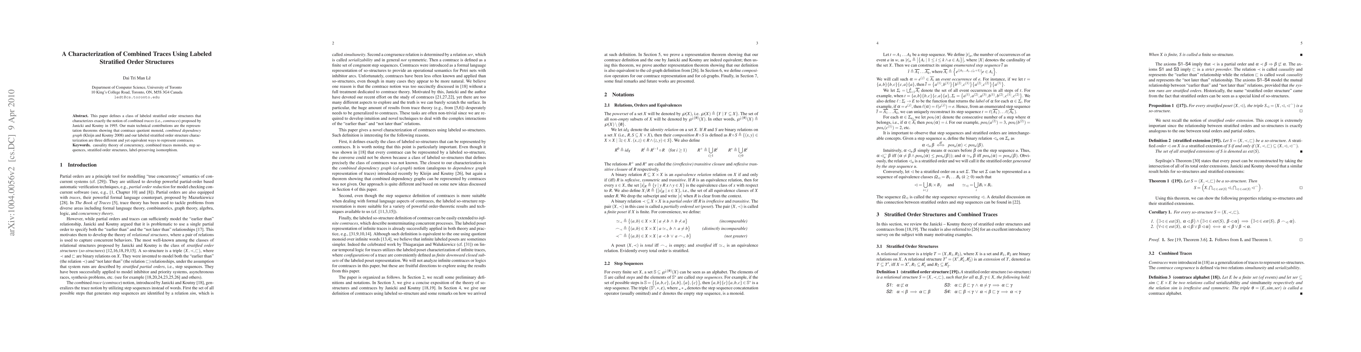 Researchers have discovered three equivalent ways to represent combined traces (comtraces) using labeled stratified order structures: comtrace quotient monoid, combined dependency graph, and the proposed structure characterization.