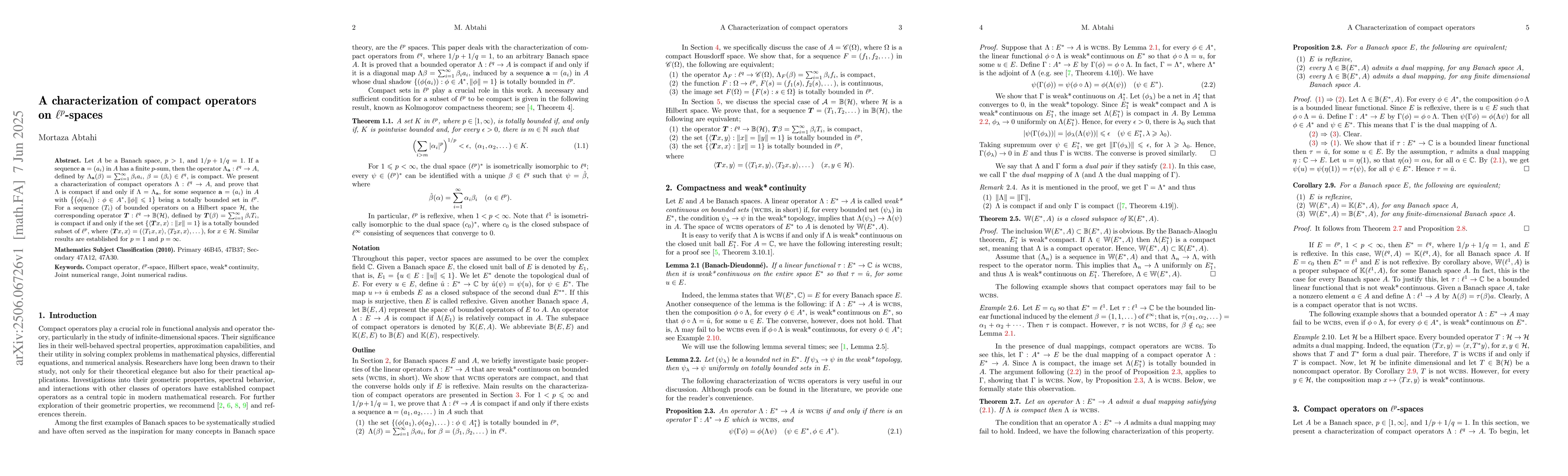 Let $A$ be a Banach space, $p>1$, and $1/p+1/q=1$. If a sequence $a=(a_i)$ in $A$ has a finite $p$-sum, then the operator $\Lambda_a:\ell^q\to A$, defined by $\Lambda_a(\beta)=\sum_{i=1}^\infty \beta_i a_i, \beta=(\beta_i)\in \ell^q$, is compact. We present a characterization of compact operators $\Lambda:\ell^q\to A$, and prove that $\Lambda$ is compact if and only if $\Lambda=\Lambda_a$, for some sequence $a=(a_i)$ in $A$ with $\{(\phi(a_i)): \phi\in A^*, \|\phi\|\leq 1\}$ being a totally bounded set in $\ell^p$. For a sequence $(T_i)$ of bounded operators on a Hilbert space $H$, the corresponding operator $T:\ell^q\to B(H)$, defined by $T(\beta) = \sum_{i=1}^\infty \beta_i T_i$, is compact if and only if the set $\{\langle T x,x\rangle:\|x\|=1\}$ is a totally bounded subset of $\ell^p$, where $\langle T x,x\rangle = (\langle T_1 x,x\rangle, \langle T_2 x,x\rangel, \dotsc)$, for $x\in H$. Similar results are established for $p=1$ and $p=\infty$.