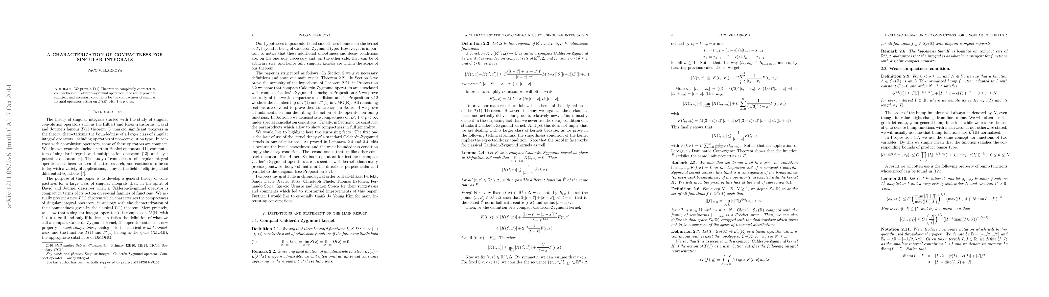 Summary: This paper establishes a T(1) Theorem to fully characterize the compactness of Calderon-Zygmund operators, providing both necessary and sufficient conditions for the compactness of singular integral operators in L^p(R).