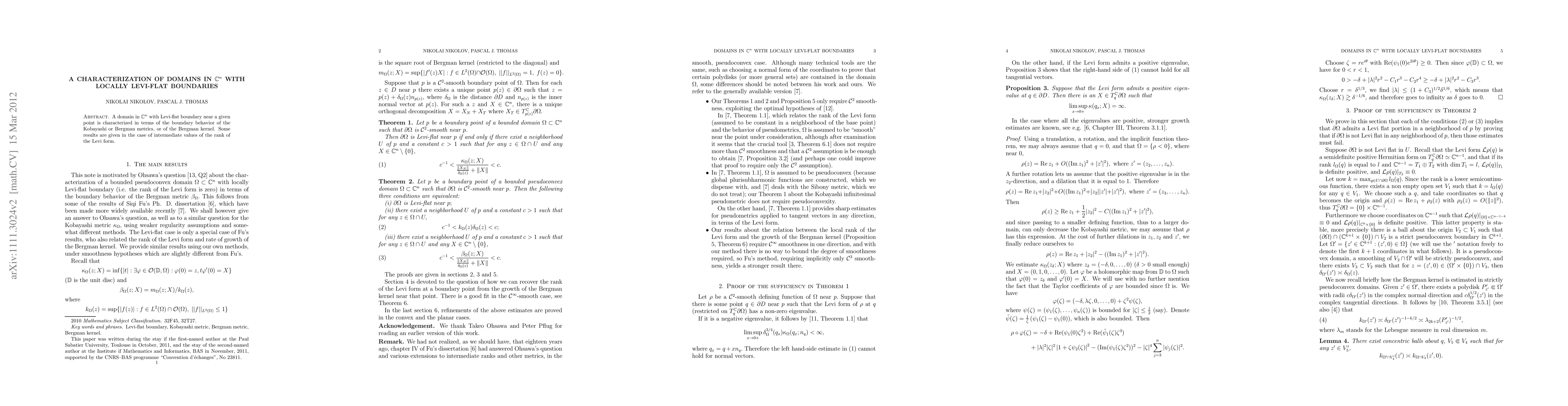 Research characterizes domains in complex space with Levi-flat boundaries based on boundary behavior of metrics or Bergman kernel, offering insights into the rank of the Levi form.