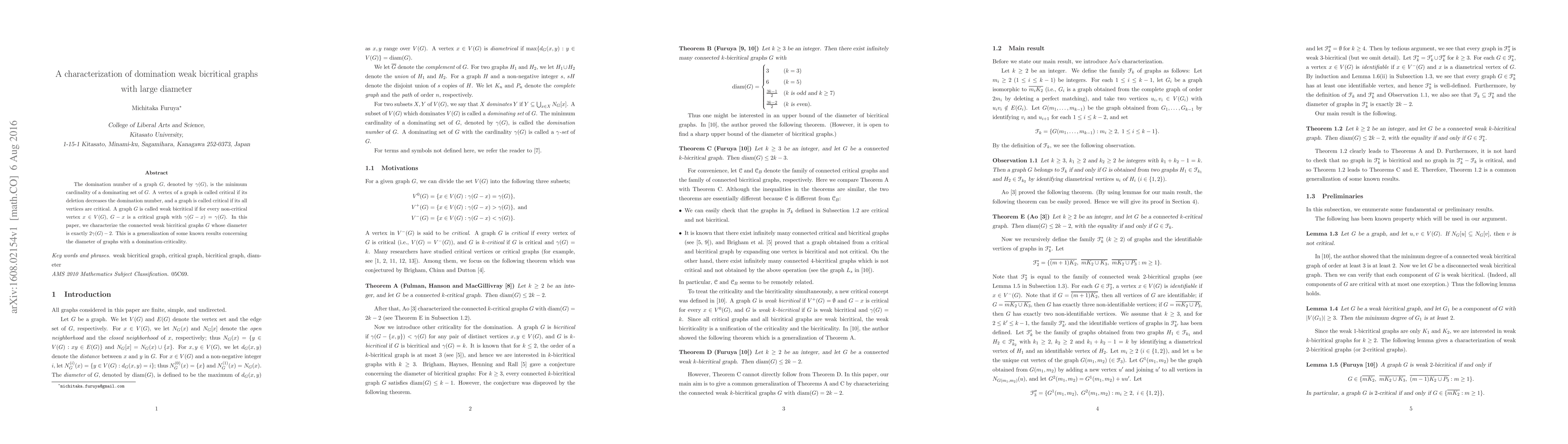 This paper characterizes connected weak bicritical graphs with a diameter of $2\gamma (G)-2$, where $\gamma (G)$ is the domination number. It generalizes previous results on the diameter of domination-critical graphs.