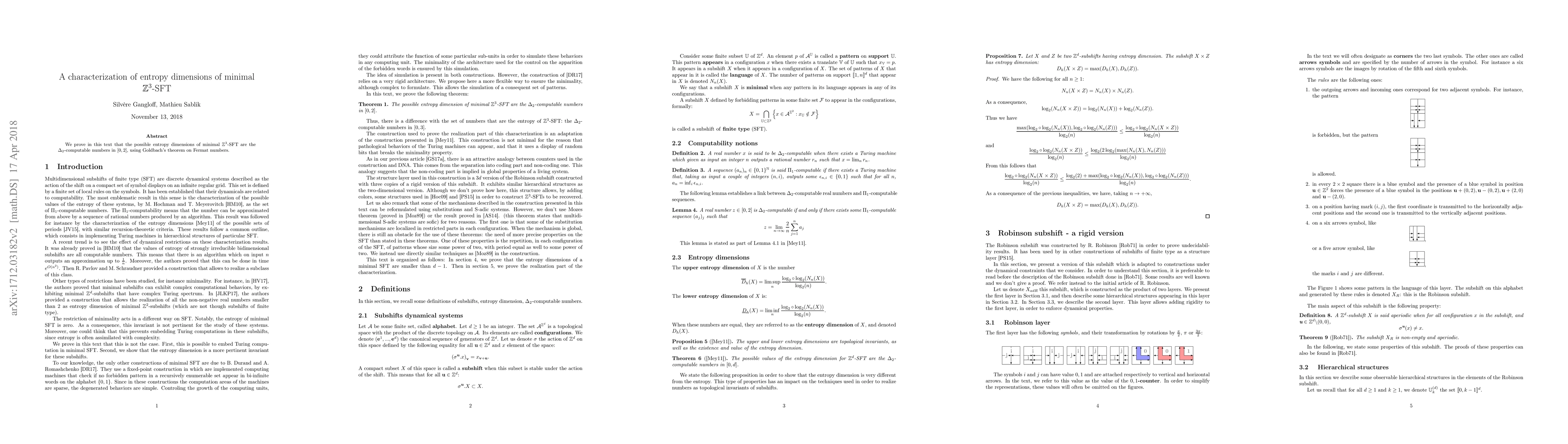 We prove in this text a characterization of the possible entropy dimensions of minimal tridimensional subshifts of finite type with a computability condition, using Goldbach's theorem on Fermat numbers.