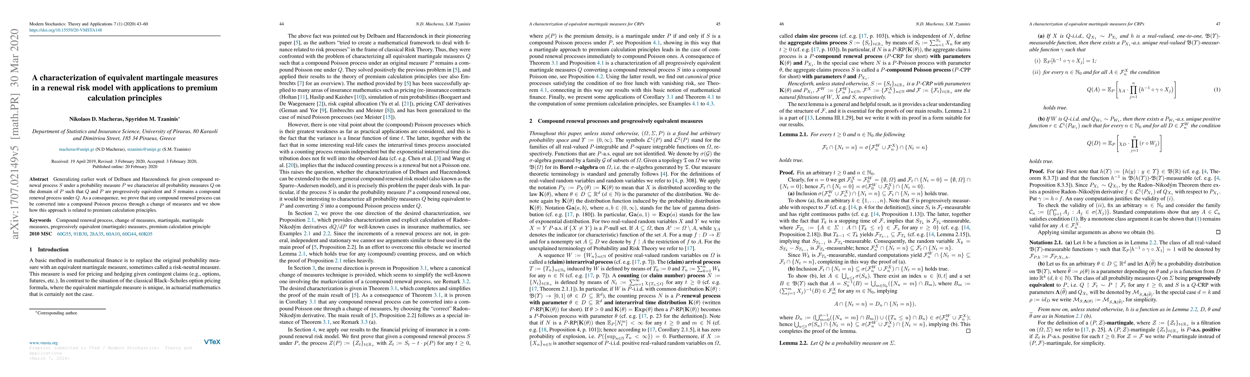 This paper characterizes equivalent martingale measures for a renewal risk model, proving that any compound renewal process can be transformed into a compound Poisson process via a change of measure, with implications for premium calculation principles.