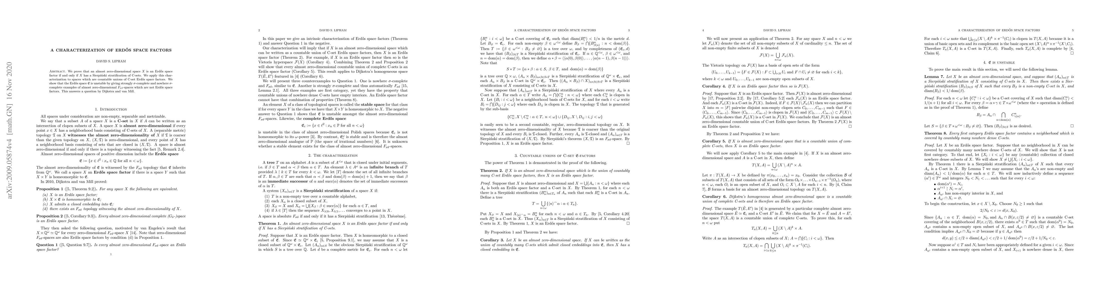 We prove that an almost zero-dimensional space $X$ is an Erd\H{o}s space factor if and only if $X$ has a Sierpi\'{n}ski stratification of C-sets. We apply this characterization to spaces which are countable unions of C-set Erd\H{o}s space factors. We show that the Erd\H{o}s space $\mathfrak E$ is unstable by giving strongly $\sigma$-complete and nowhere $\sigma$-complete examples of almost zero-dimensional $F_{\sigma\delta}$-spaces which are not Erd\H{o}s space factors. This answers a question by Dijkstra and van Mill.
