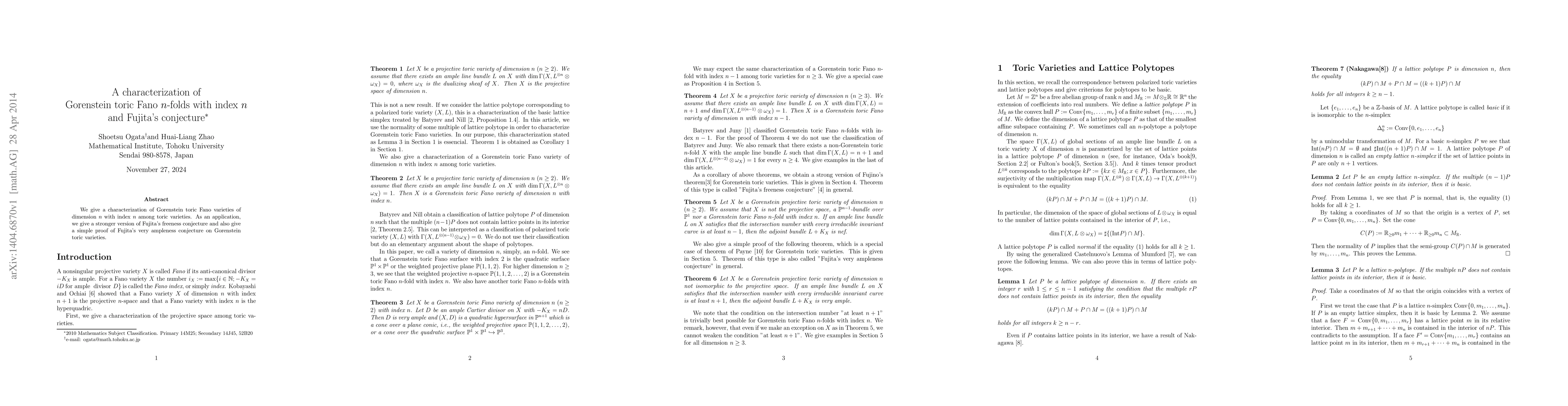 This paper characterizes Gorenstein toric Fano $n$-folds with index $n$, providing insights into their structure among toric varieties. Additionally, it offers a robust version of Fujita's freeness conjecture and presents a straightforward proof of Fujita's very ampleness conjecture for Gorenstein toric varieties.