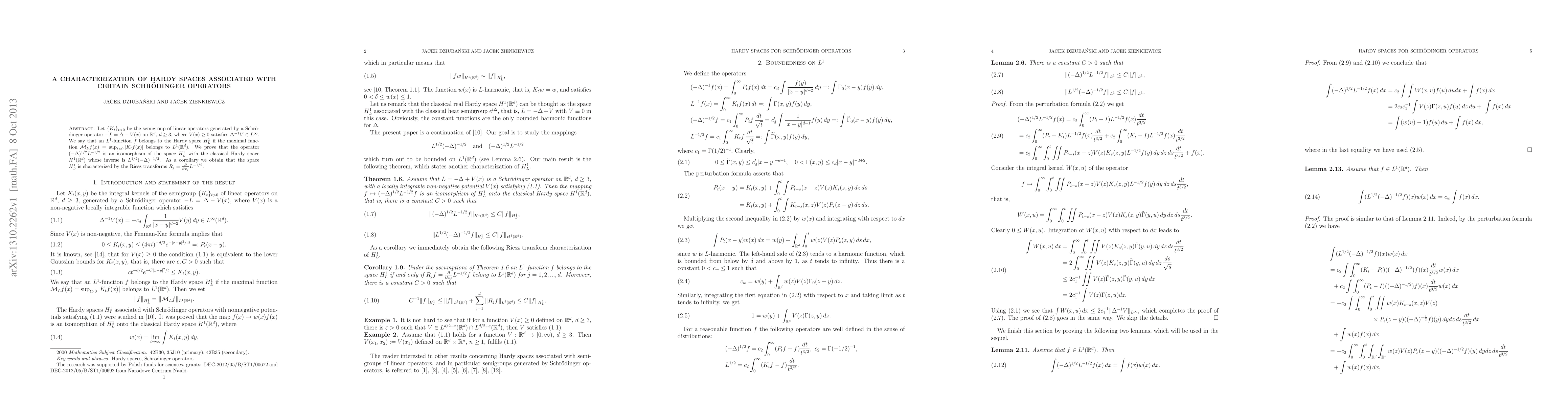 Let $\{K_t\}_{t>0}$ be the semigroup of linear operators generated by a Schr\"odinger operator $-L=\Delta - V(x)$ on $\mathbb R^d$, $d\geq 3$, where $V(x)\geq 0$ satisfies $\Delta^{-1} V\in L^\infty$. We say that an $L^1$-function $f$ belongs to the Hardy space $H^1_L$ if the maximal function $\mathcal M_L f(x) = \sup_{t>0} |K_tf(x)|$ belongs to $L^1(\mathbb R^d) $. We prove that the operator $(-\Delta)^{1\slash 2} L^{-1\slash 2}$ is an isomorphism of the space $H^1_L$ with the classical Hardy space $H^1(\mathbb R^d)$ whose inverse is $L^{1\slash 2} (-\Delta)^{-1\slash 2}$. As a corollary we obtain that the space $H^1_L$ is characterized by the Riesz transforms $R_j=\frac{\partial}{\partial x_j}L^{-1\slash 2}$.