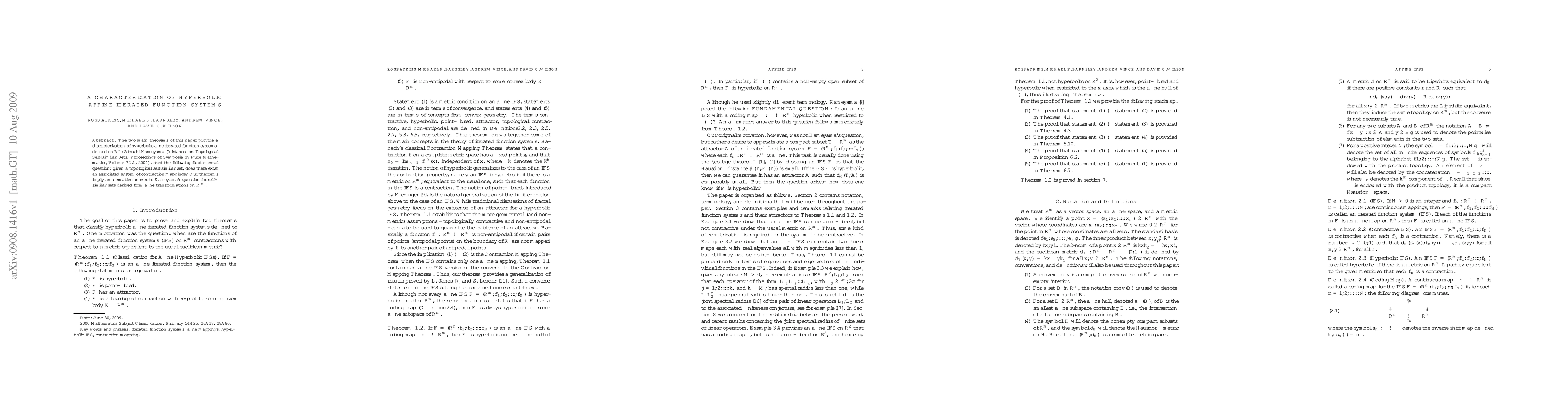 The two main theorems of this paper provide a characterization of hyperbolic affine iterated function systems defined on Rm. Atsushi Kameyama (Distances on Topological Self-Similar Sets, Proceedings of Symposia in Pure Mathematics, Volume 72.1, 2004) asked the following fundamental question: given a topological self-similar set, does there exist an associated system of contraction mappings? Our theorems imply an affirmative answer to Kameyama's question for self-similar sets derived from affine transformations on Rm.