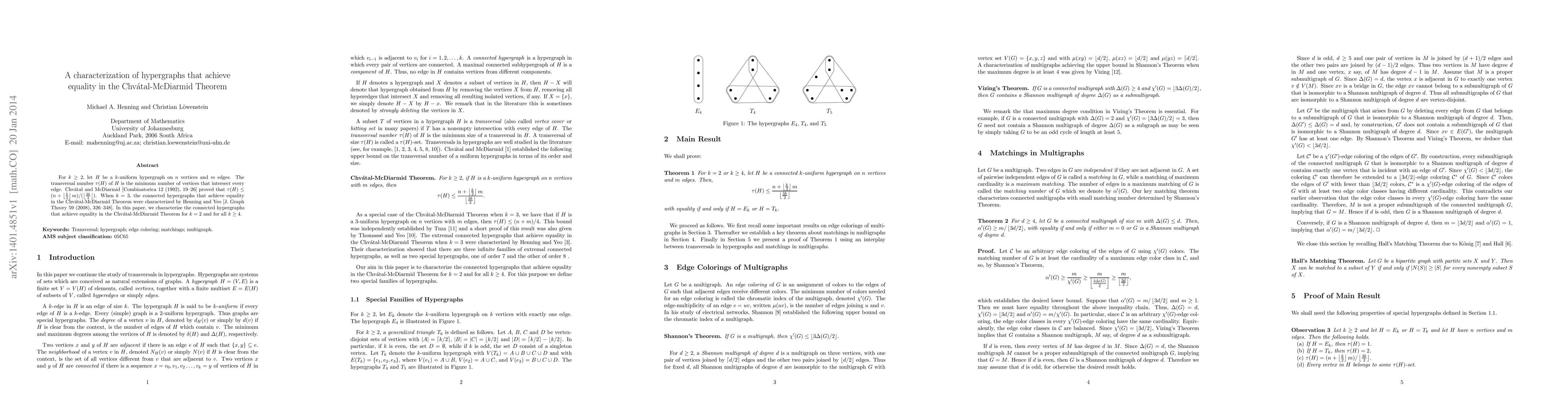 For $k \ge 2$, let $H$ be a $k$-uniform hypergraph on $n$ vertices and $m$ edges. The transversal number $\tau(H)$ of $H$ is the minimum number of vertices that intersect every edge. Chv\'{a}tal and McDiarmid [Combinatorica 12 (1992), 19--26] proved that $\tau(H)\le ( n + \left\lfloor \frac k2 \right\rfloor m )/ ( \left\lfloor \frac{3k}2 \right\rfloor )$. When $k = 3$, the connected hypergraphs that achieve equality in the Chv\'{a}tal-McDiarmid Theorem were characterized by Henning and Yeo [J. Graph Theory 59 (2008), 326--348]. In this paper, we characterize the connected hypergraphs that achieve equality in the Chv\'{a}tal-McDiarmid Theorem for $k = 2$ and for all $k \ge 4$.