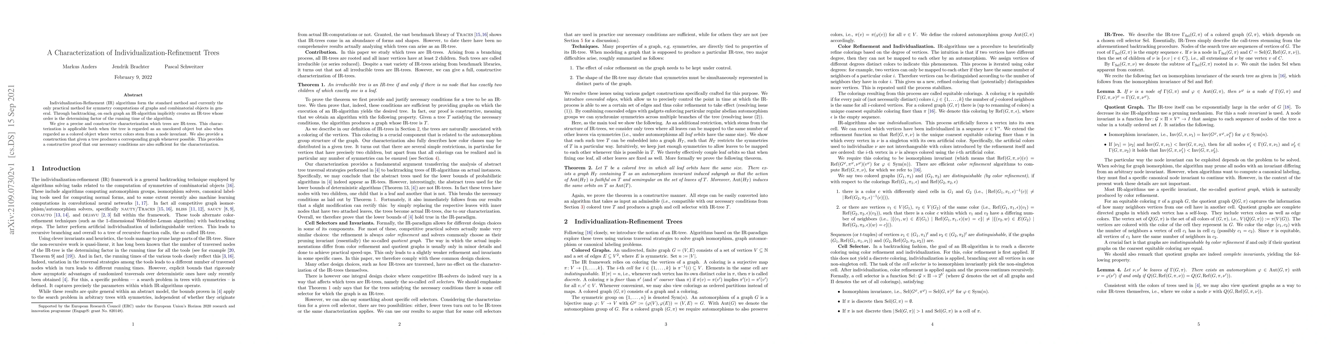 This paper characterizes Individualization-Refinement (IR) trees, which are crucial for symmetry computations in graphs and combinatorial objects. It provides a precise and constructive method to identify which trees can be IR-trees, applicable both for uncolored and colored trees, and constructs graphs from these trees to prove the sufficiency of the conditions.