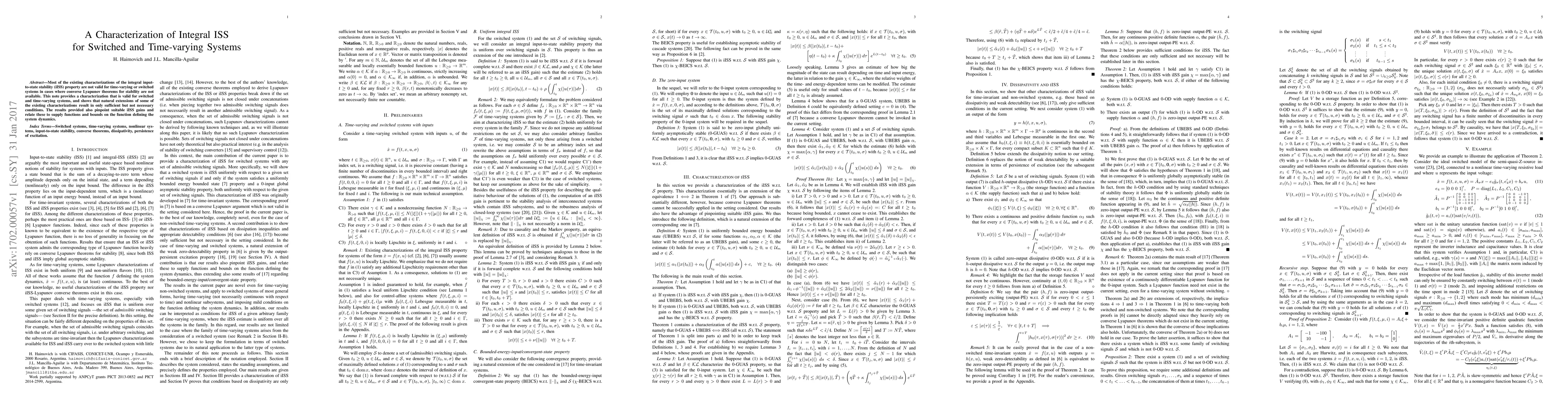 This paper characterizes integral input-to-state stability (iISS) for time-varying and switched systems, providing a valid characterization where existing methods fail. It identifies that extended existing characterizations are only sufficient but not necessary conditions, and relates iISS gains to supply functions and system dynamics bounds.