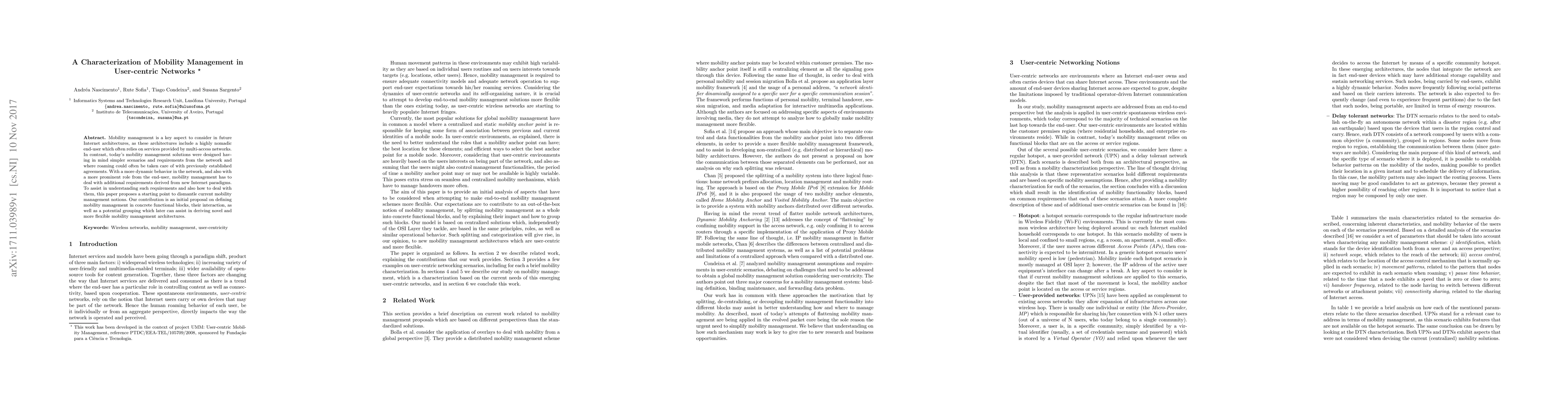 This paper proposes a new approach to mobility management in user-centric networks, focusing on defining functional blocks and their interaction to create more flexible architectures. It aims to address the challenges of dynamic behavior in networks and end-user involvement in mobility management.