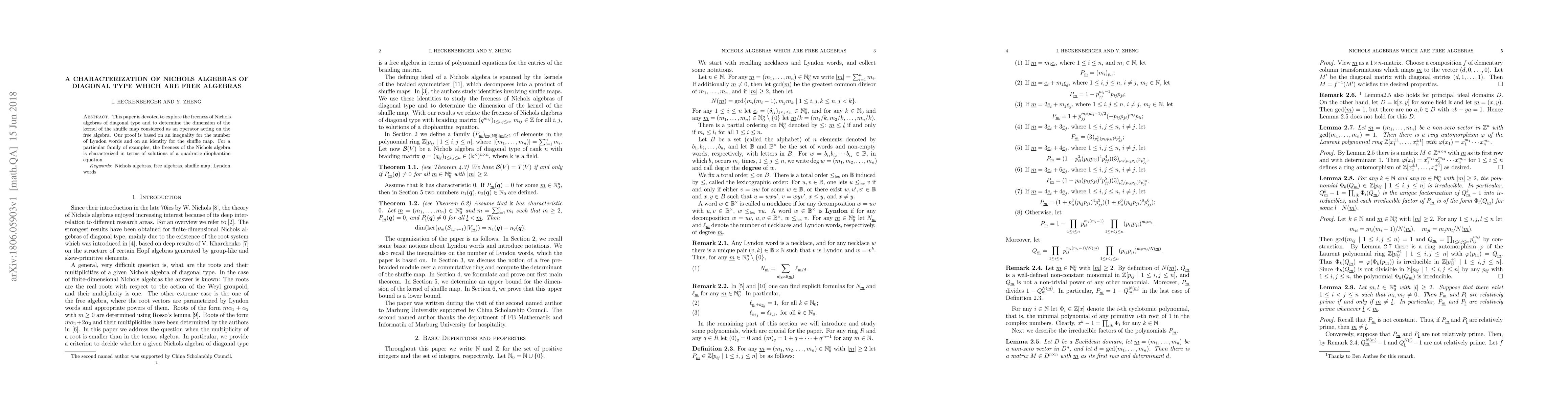 This paper is devoted to explore the freeness of Nichols algebras of diagonal type and to determine the dimension of the kernel of the shuffle map considered as an operator acting on the free algebra. Our proof is based on an inequality for the number of Lyndon words and on an identity for the shuffle map. For a particular family of examples, the freeness of the Nichols algebra is characterized in terms of solutions of a quadratic diophantine equation.