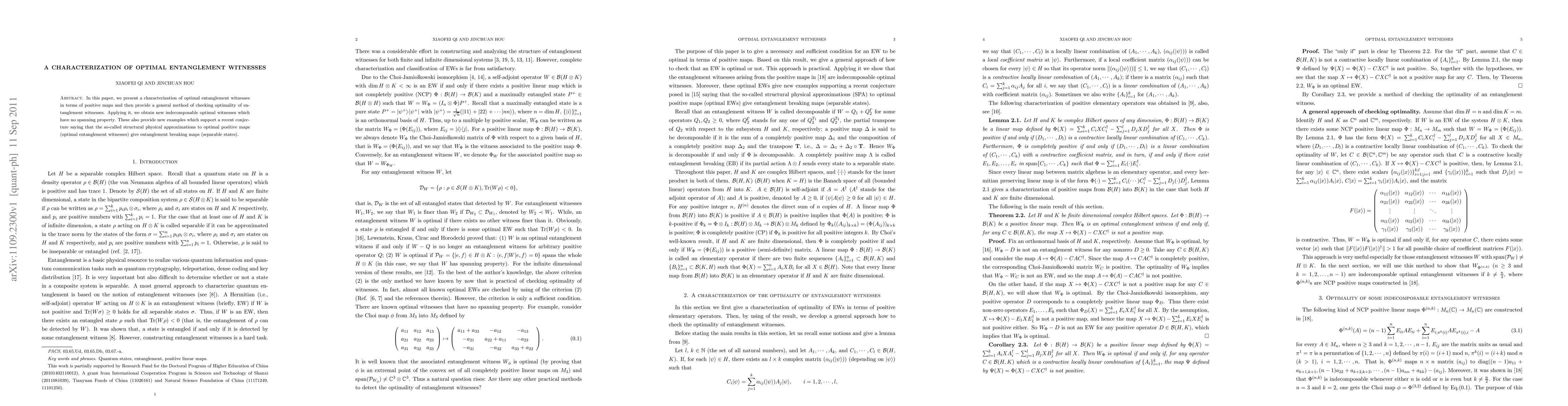 The paper presents a characterization of optimal entanglement witnesses in terms of positive maps and provides a method to check the optimality of entanglement witnesses.