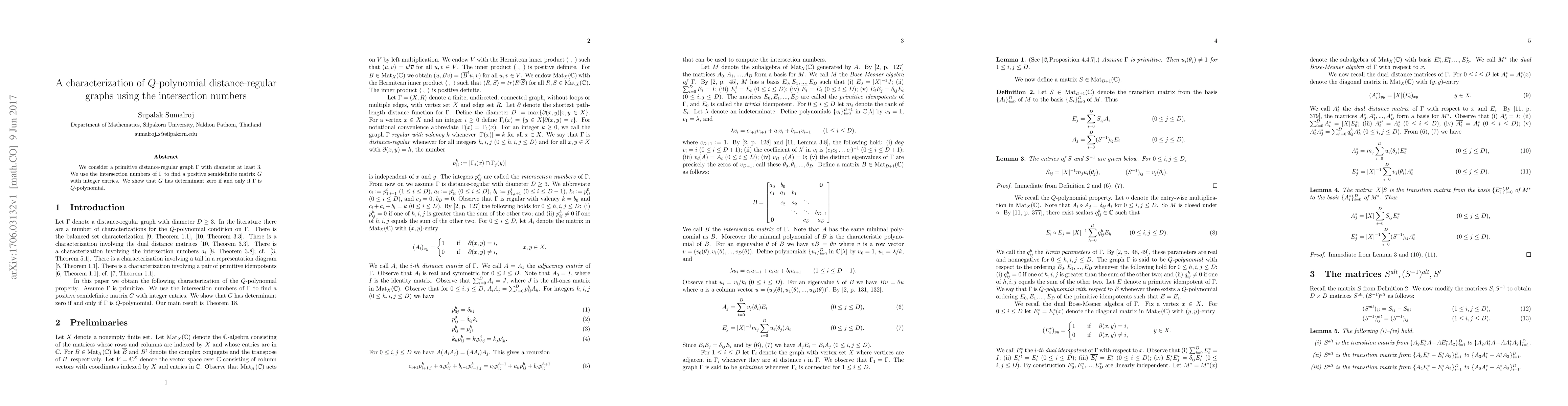 Summary: This paper characterizes $Q$-polynomial distance-regular graphs by examining their intersection numbers, demonstrating that a positive semidefinite matrix $G$ derived from these numbers has a determinant of zero if and only if the graph is $Q$-polynomial.