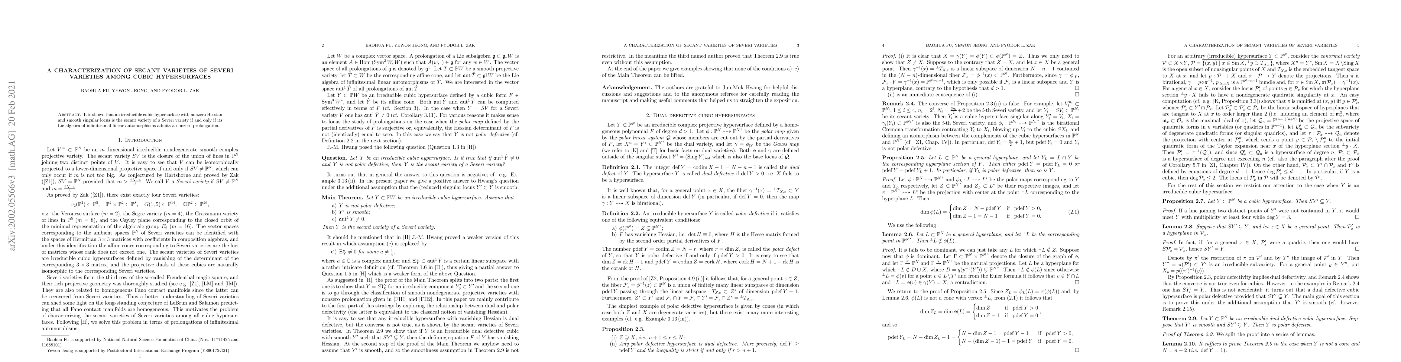 Summary: The paper establishes that an irreducible cubic hypersurface with a nonzero Hessian and smooth singular locus is the secant variety of a Severi variety if its Lie algebra of infinitesimal linear automorphisms has a nonzero prolongation. This result characterizes the connection between cubic hypersurfaces and their associated Severi varieties.