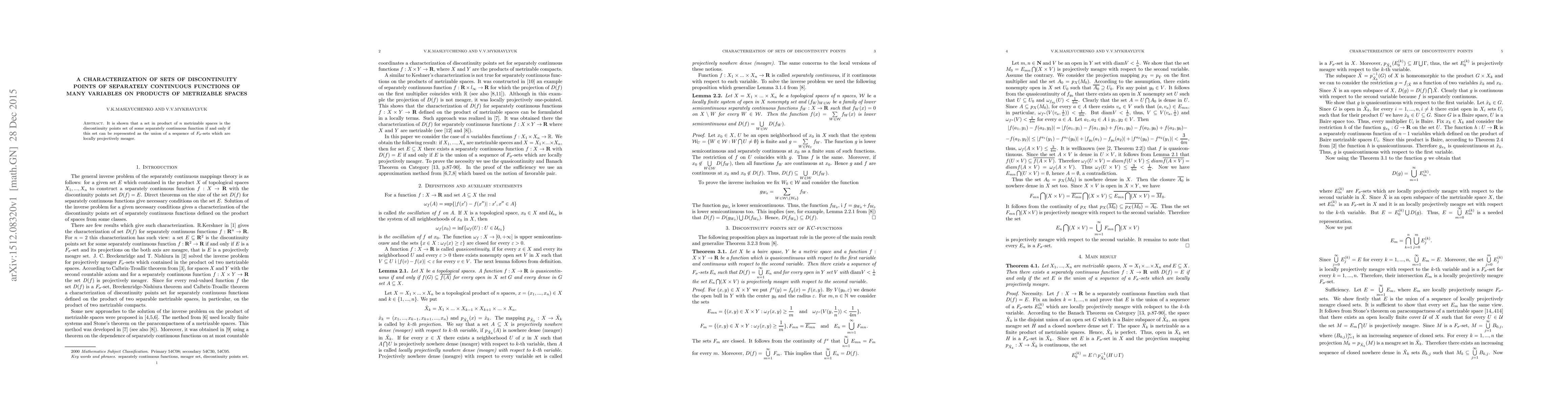 Summary: The paper characterizes sets of discontinuity points of separately continuous functions on product spaces of metrizable spaces, proving that such sets can be represented as unions of $F_{\sigma}$-sets that are locally projectively meager.