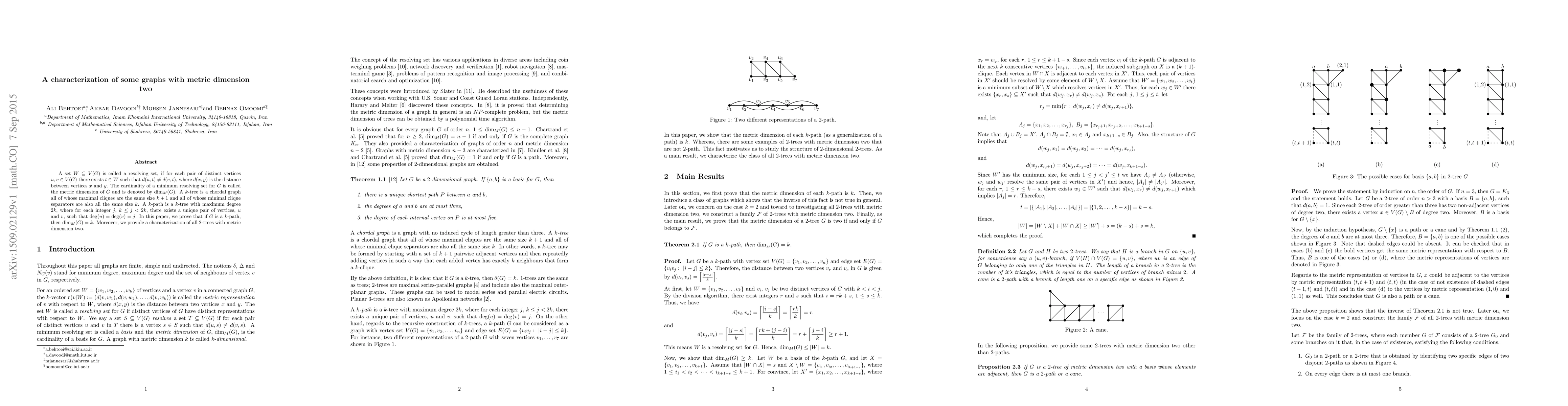A set W \subseteq V (G) is called a resolving set, if for each pair of distinct vertices u,v \in V (G) there exists t \in W such that d(u,t) \neq d(v,t), where d(x,y) is the distance between vertices x and y. The cardinality of a minimum resolving set for G is called the metric dimension of G and is denoted by dim_M(G). A k-tree is a chordal graph all of whose maximal cliques are the same size k + 1 and all of whose minimal clique separators are also all the same size k. A k-path is a k-tree with maximum degree 2k, where for each integer j, k \leq j < 2k, there exists a unique pair of vertices, u and v, such that deg(u) = deg(v) = j. In this paper, we prove that if G is a k-path, then dim_M(G) = k. Moreover, we provide a characterization of all 2-trees with metric dimension two.