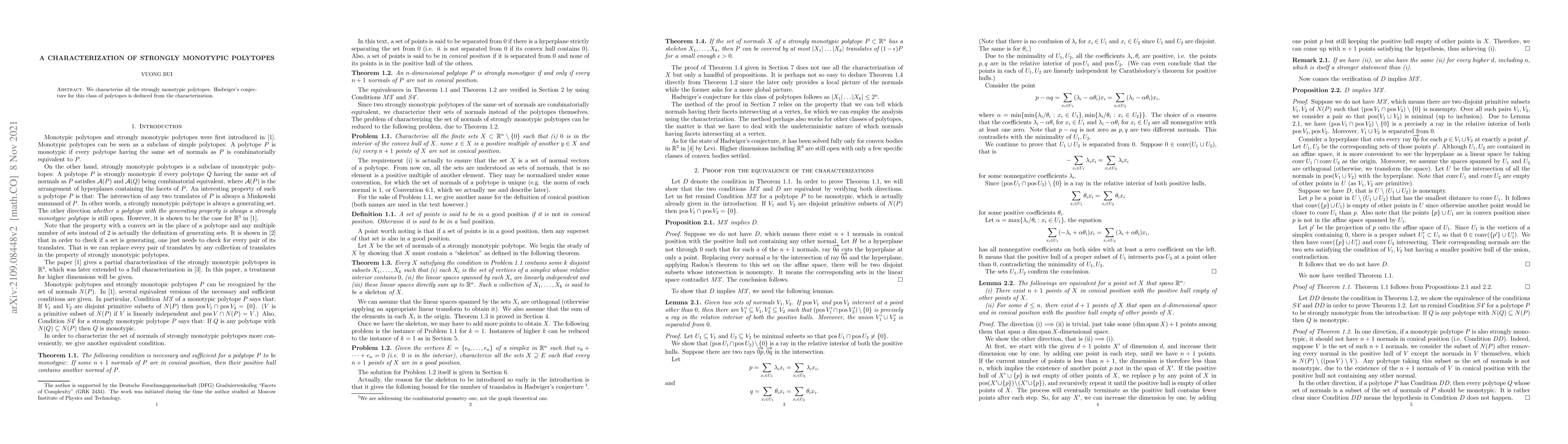 Summary: This paper identifies and characterizes all strongly monotypic polytopes, and demonstrates that Hadwiger's conjecture holds true for this specific class of polytopes based on the derived characterization.