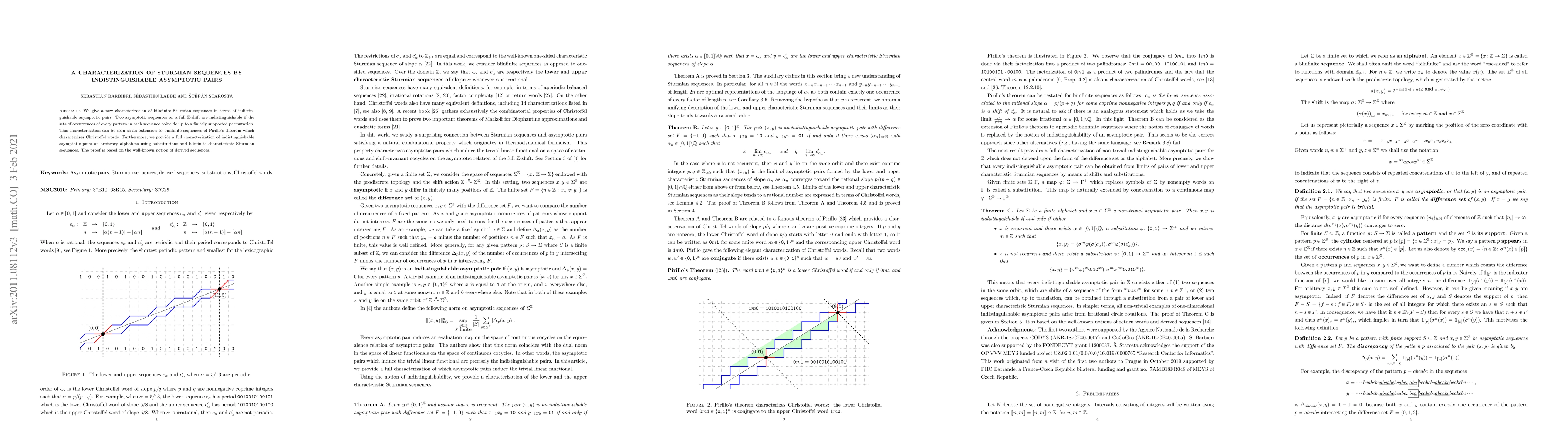 This paper characterizes biinfinite Sturmian sequences through indistinguishable asymptotic pairs, where pairs are indistinguishable if their pattern occurrences match up to a finitely supported permutation. It extends Pirillo's theorem for Christoffel words and provides a full characterization of such pairs on any alphabet using substitutions and characteristic Sturmian sequences.
