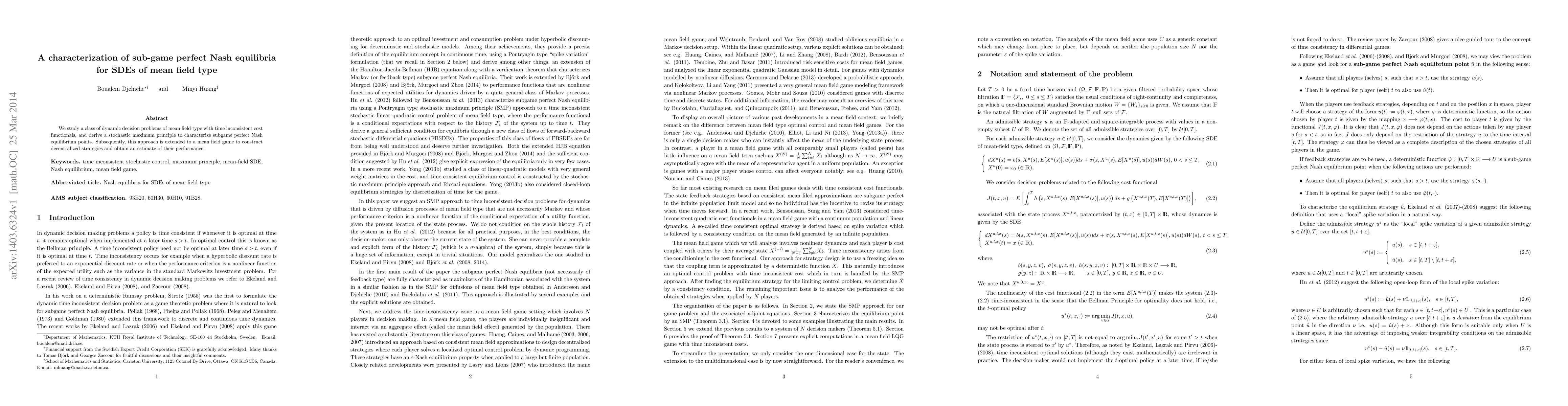 This paper develops a stochastic maximum principle to characterize subgame perfect Nash equilibria in dynamic decision problems of mean field type with time inconsistent cost functionals, and extends this to mean field games to construct decentralized strategies and estimate their performance.