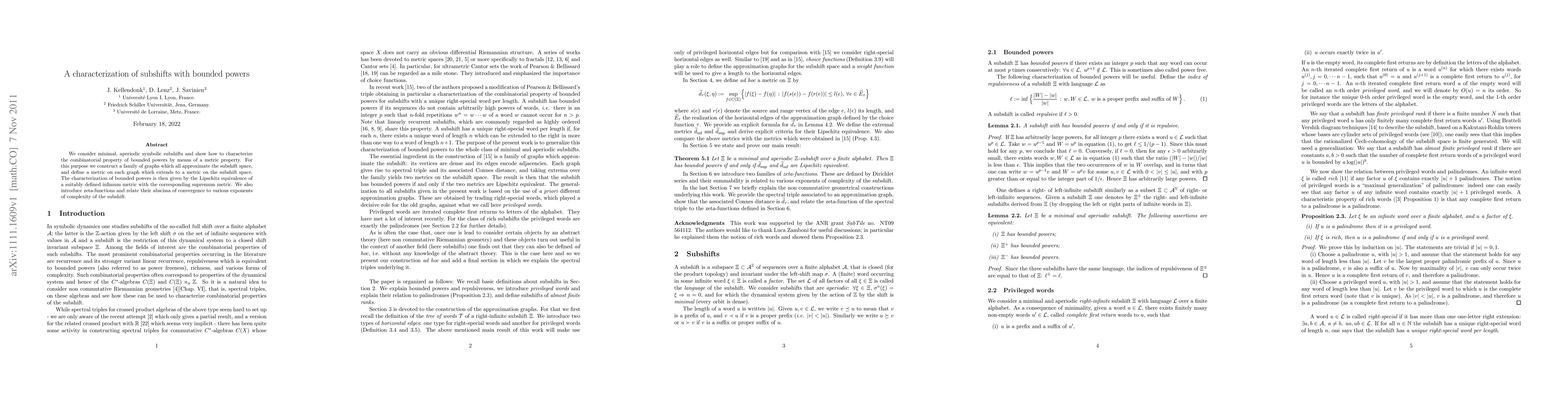 Researchers developed a new method to characterize subshifts with bounded powers using graph theory and metric properties. They introduced a specific metric that can distinguish between subshifts with bounded powers and those without.