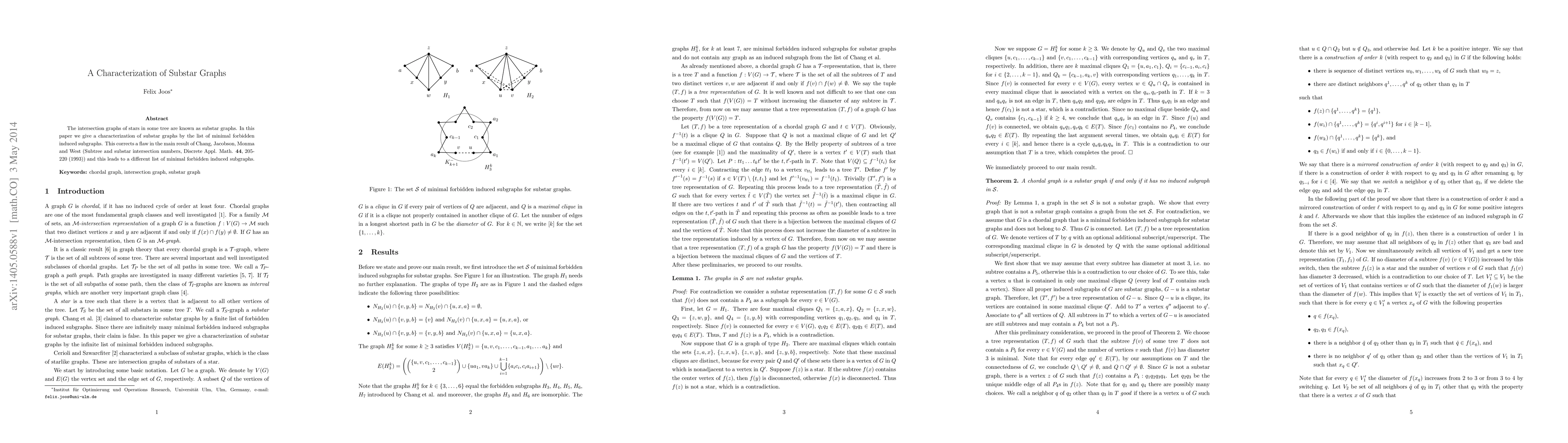 The intersection graphs of stars in some tree are known as substar graphs. In this paper we give a characterization of substar graphs by the list of minimal forbidden induced subgraphs. This corrects a flaw in the main result of Chang, Jacobson, Monma and West (Subtree and substar intersection numbers, Discrete Appl. Math. 44, 205-220 (1993)) and this leads to a different list of minimal forbidden induced subgraphs.