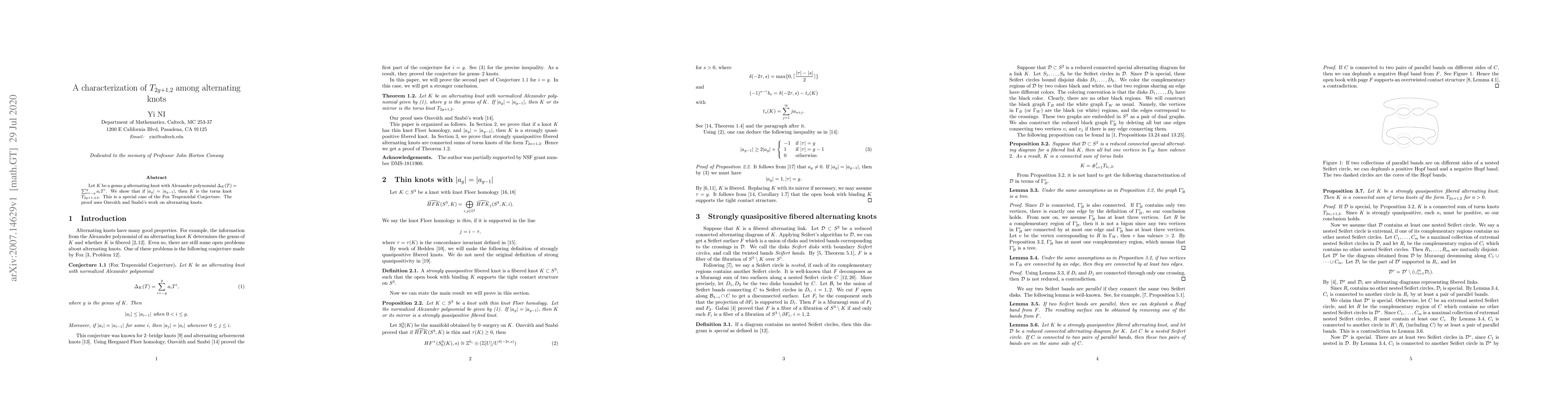 A new result in knot theory shows that if alternating knots have a specific relationship between their Alexander polynomial coefficients, they can be classified as torus knots of a particular type. This finding is a special case of the Fox Trapezoidal Conjecture.